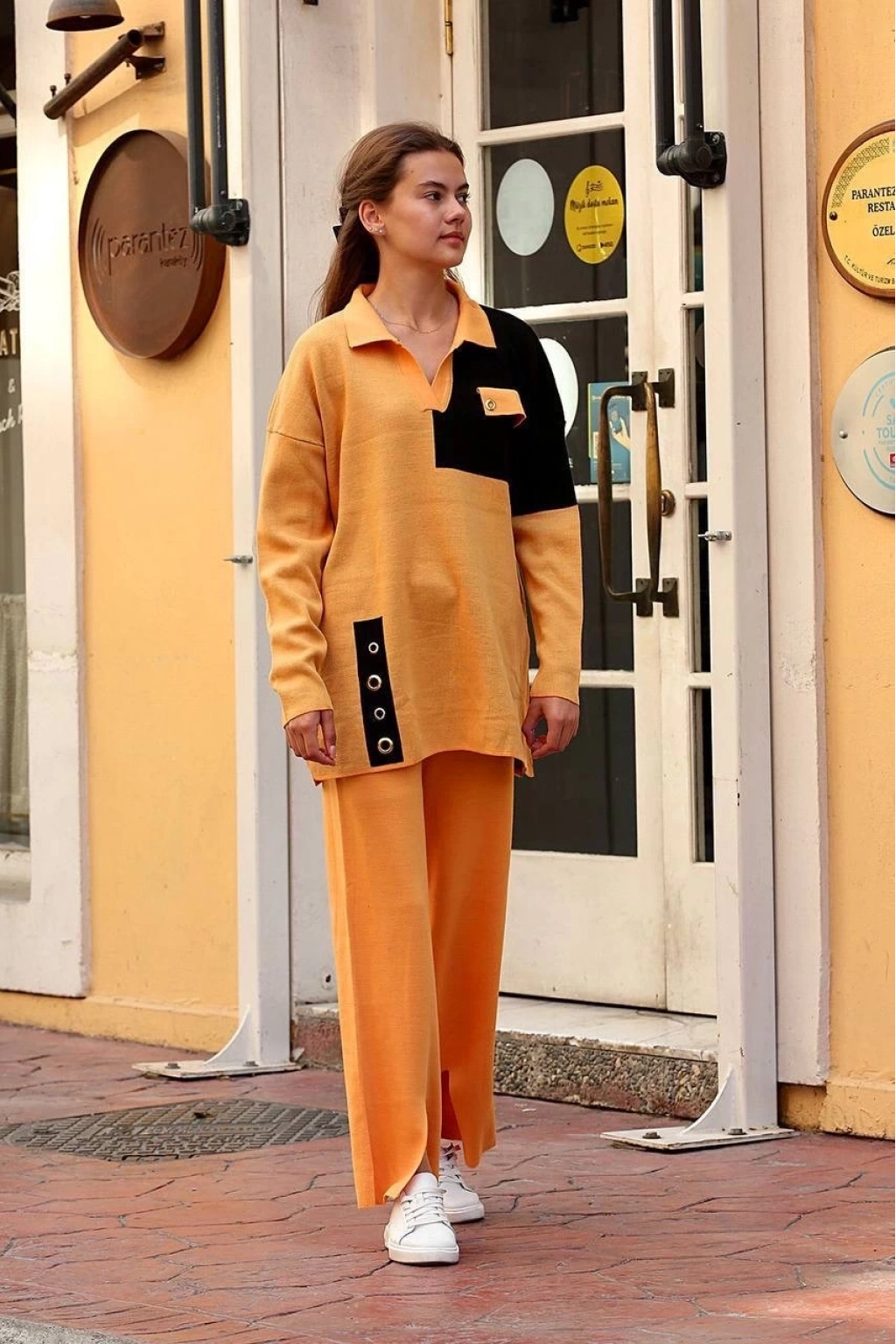 Mevsim geçişlerinde veya serin yaz günlerinde tercih edebileceğiniz bu şık takım, gardırobunuzun vazgeçilmezi olmaya aday.