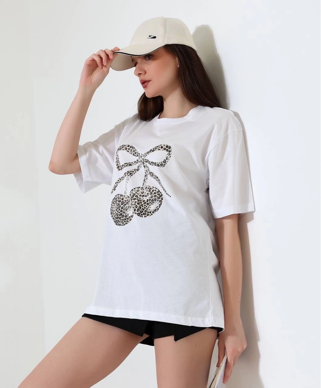 ÇOK SATAN'in şık tasarımıyla öne çıkan leopar desenli kiraz baskılı tişört, gardırobunuzu renklendirmek için ideal bir seçimdir.