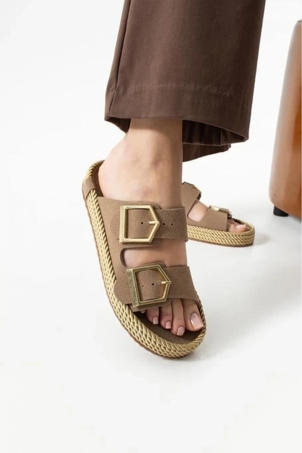 Loera Vizon Nubuk Çift Tokalı Terlik