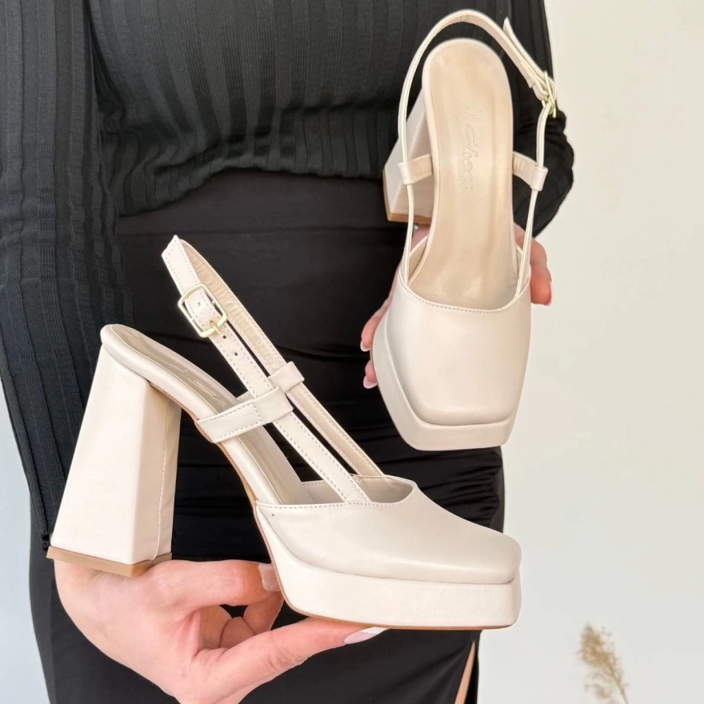 TAVSİYE EDİLEN GÜVENLİ SATICI Mety Bej Cilt Topuklu Ayakkabı