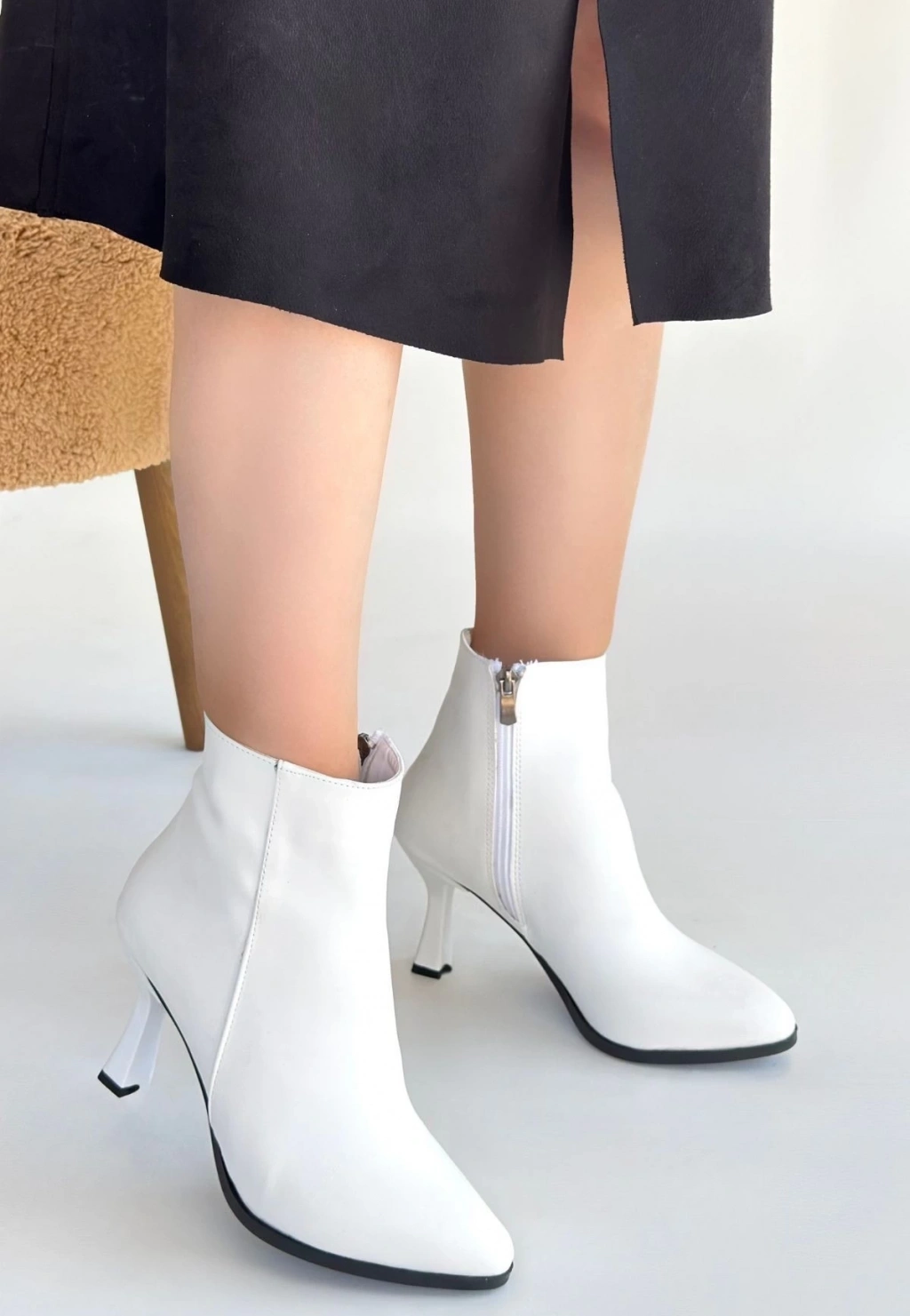 ÇOK SATAN Mişha Beyaz Cilt Topuklu Bot