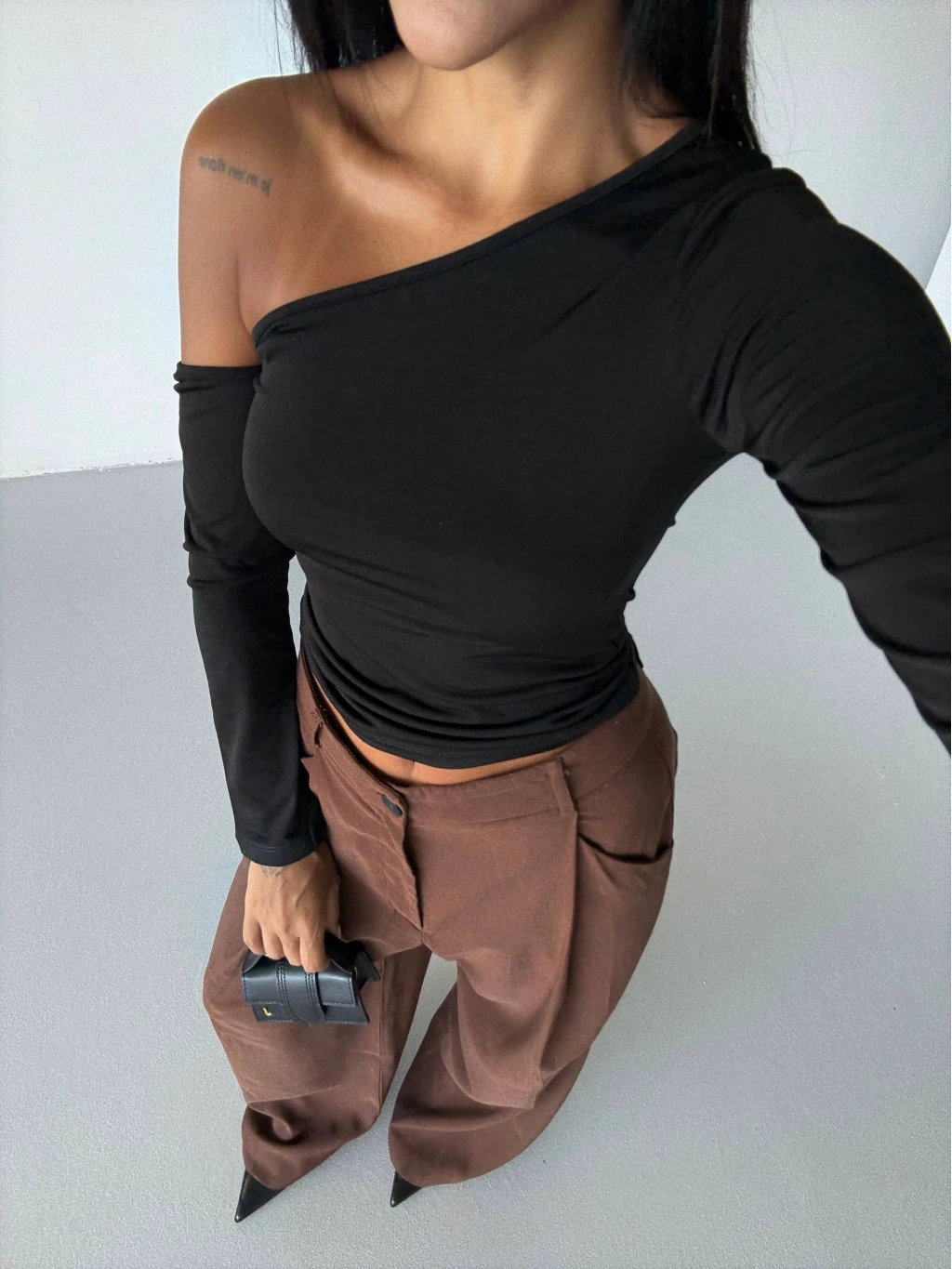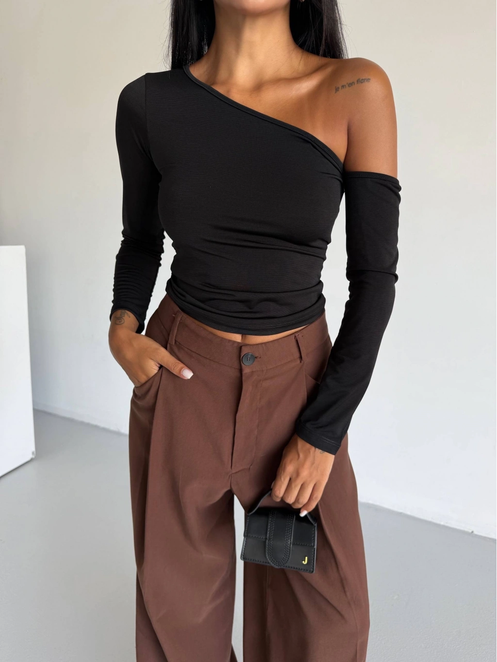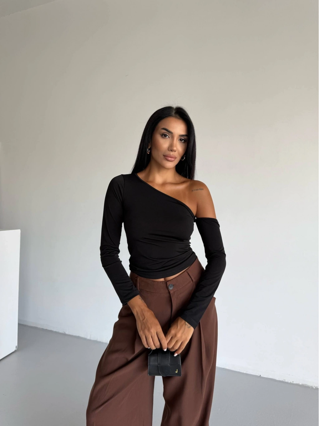 Omuz detaylı kollu bluz siyah f2336, şıklık ve rahatlığı bir arada sunar.
