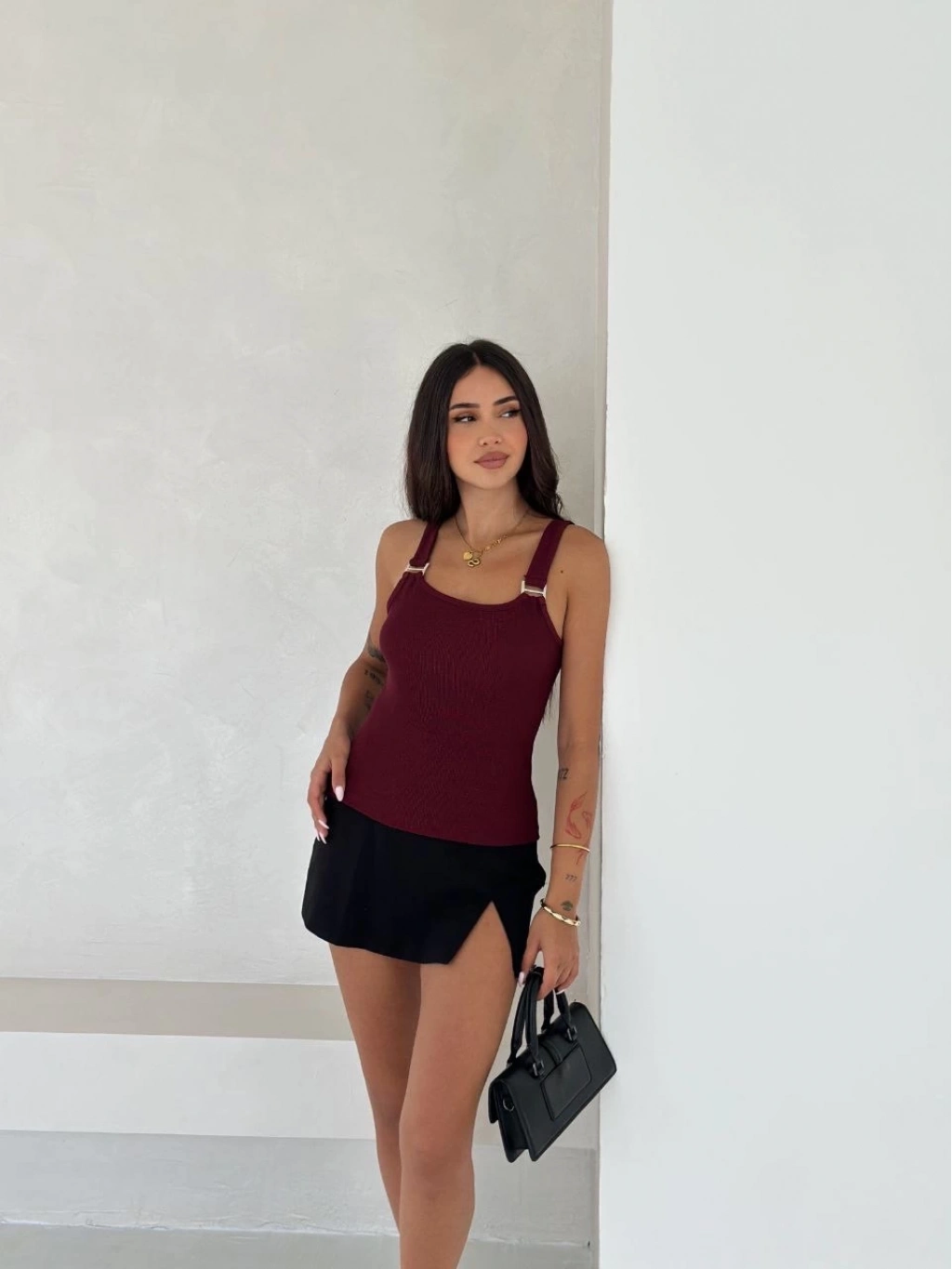 Şıklığı ve konforu bir arada arayan kadınların tercihi olan Ottoman toka askılı bluz bordo s4194, gardırobunuzun vazgeçilmezi olmaya aday.
