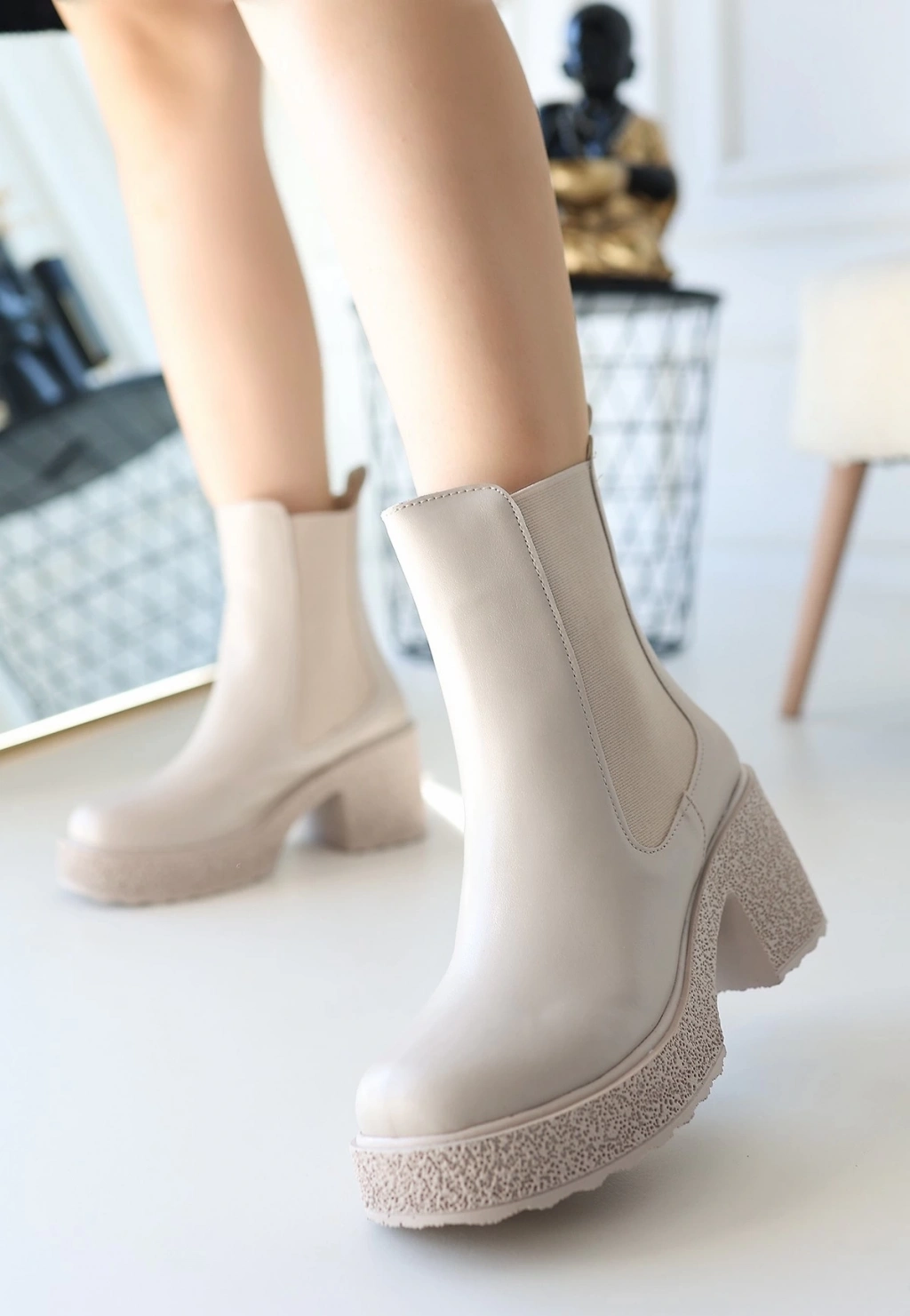 TAVSİYE EDİLEN GÜVENLİ SATICI Paigo Bej Cilt Topuklu Bot