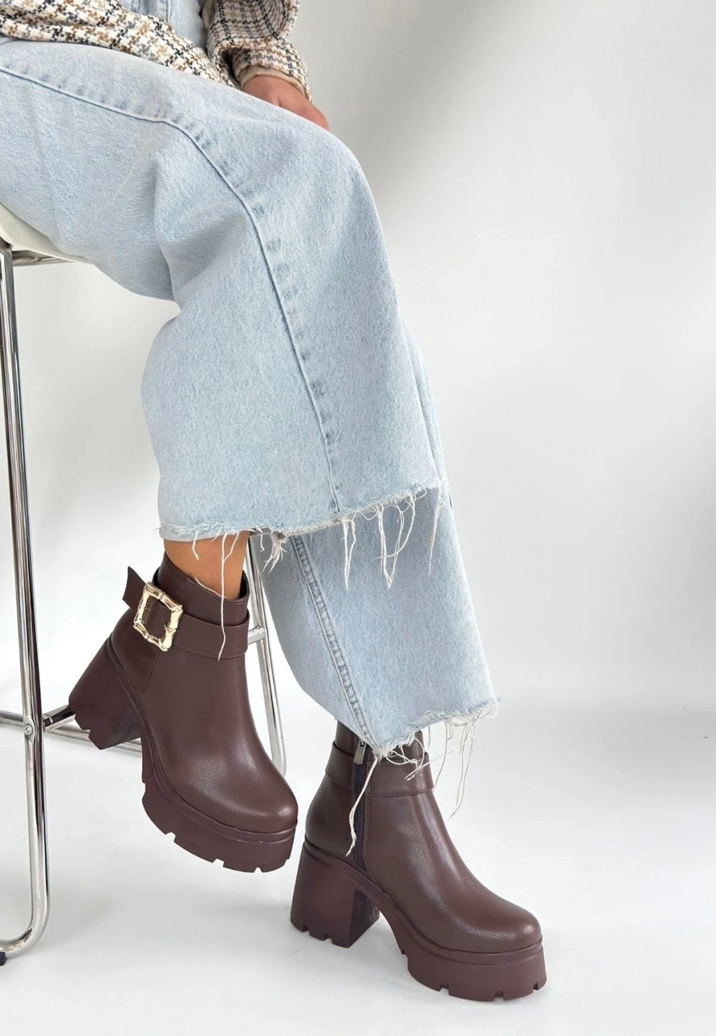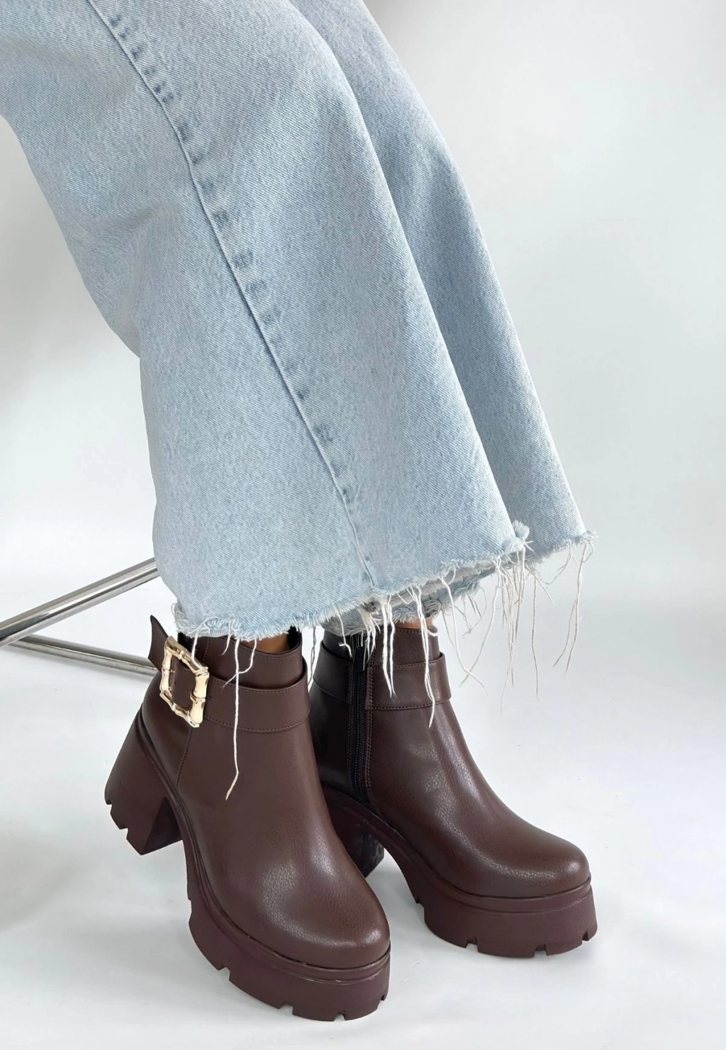 ÇOK SATAN Pinma Kahverengi Cilt Topuklu Bot