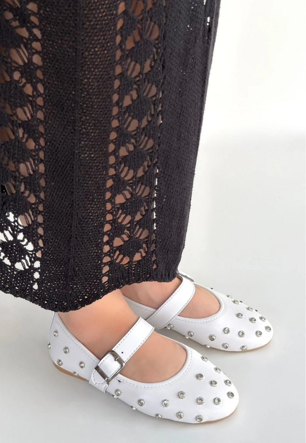Ritta Beyaz Cilt Kemerli Babet Ayakkabı