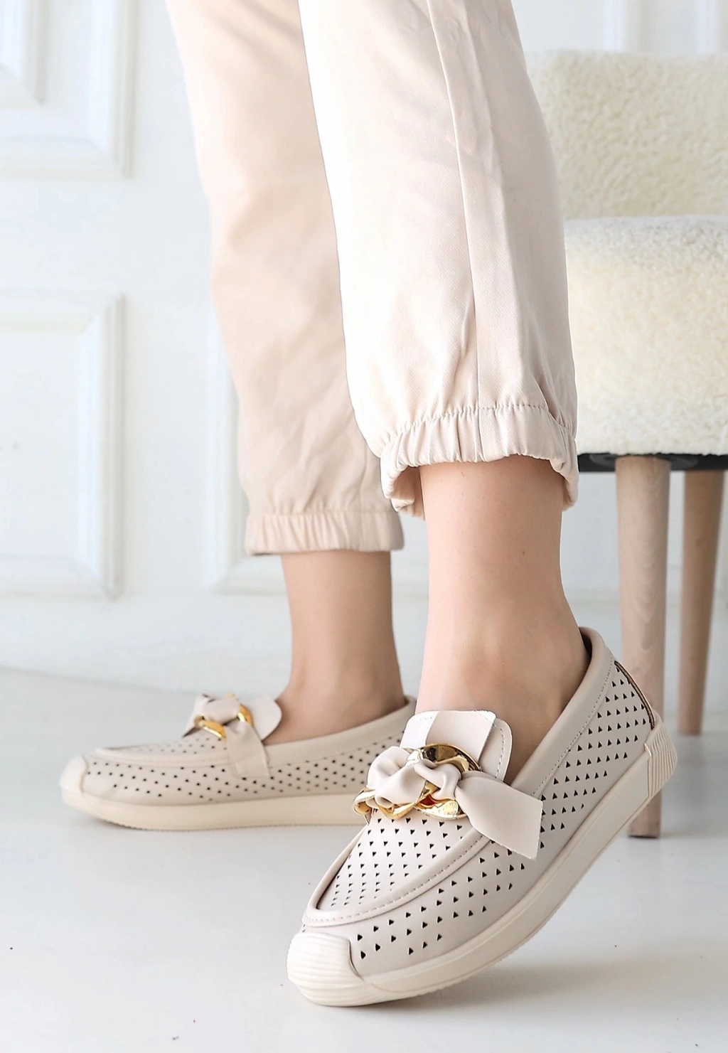 TAVSİYE EDİLEN GÜVENLİ SATICI Riwan Bej Cilt Babet Ayakkabı