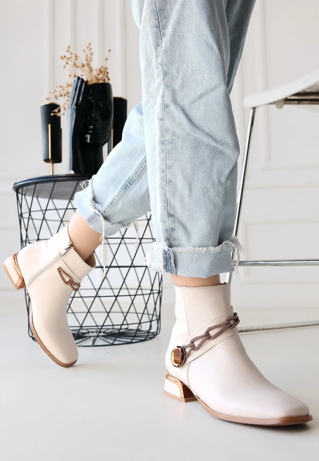 TAVSİYE EDİLEN GÜVENLİ SATICI Roxani Bej Cilt Topuklu Bot