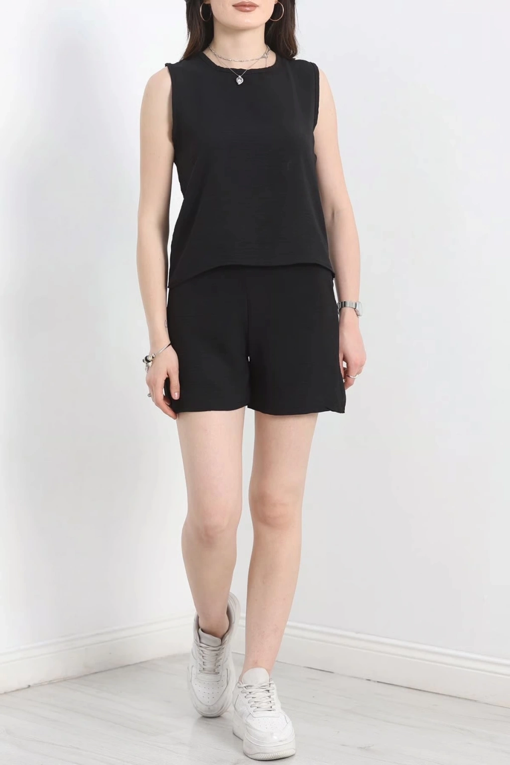 Ayrobin Şortlu Takım, şıklığı ve rahatlığı bir arada sunar. Siyah rengi ile her mekâna uyum sağlayan bu takım, kadınların favorisi olmaya aday.
