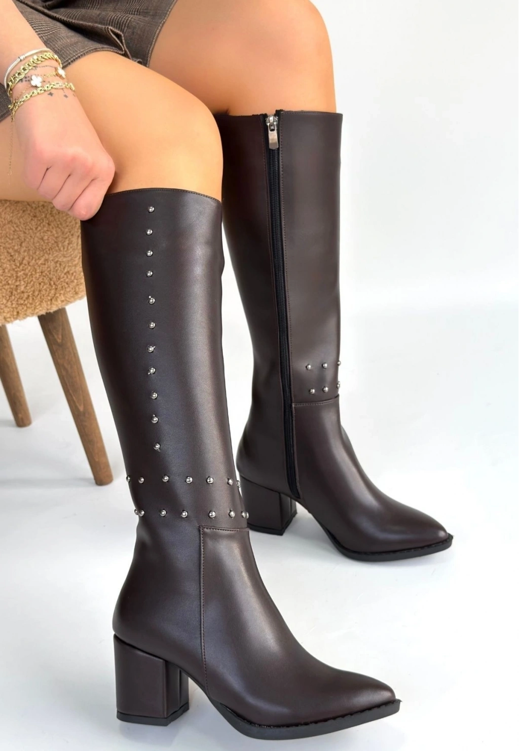 Tiyan Kahverengi Cilt Topuklu Çizme