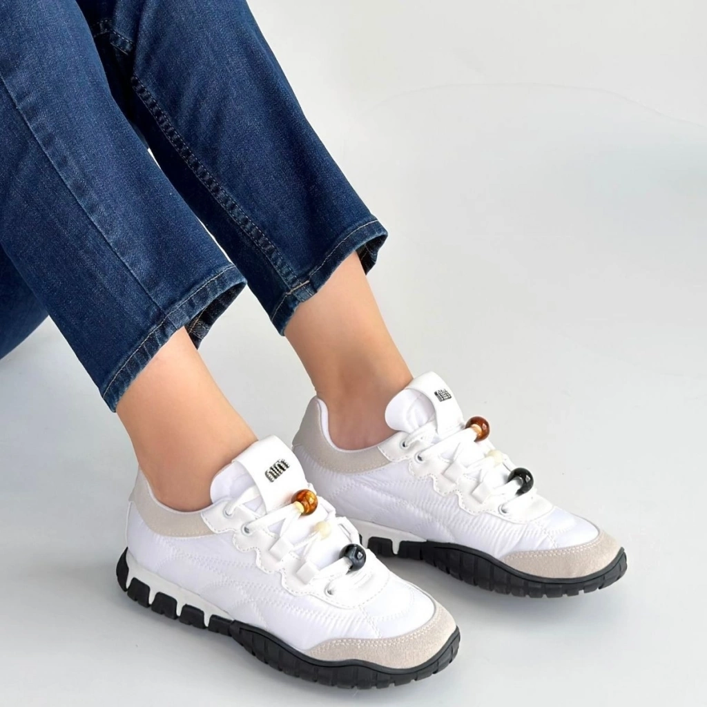 Tues Beyaz Nubuk Bağcıklı Spor Ayakkabı