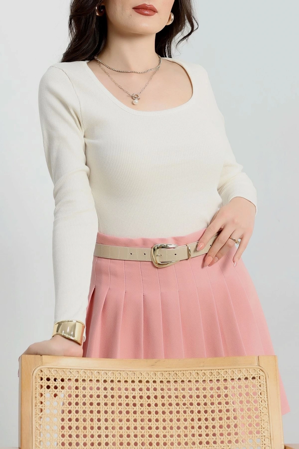 Beyaz rengi ve şık tasarımıyla dikkat çeken U yaka kaşkorse bluz, gardırobunuzun vazgeçilmezi olmaya aday. Tarzınızı yansıtmak için ideal bir seçimdir.