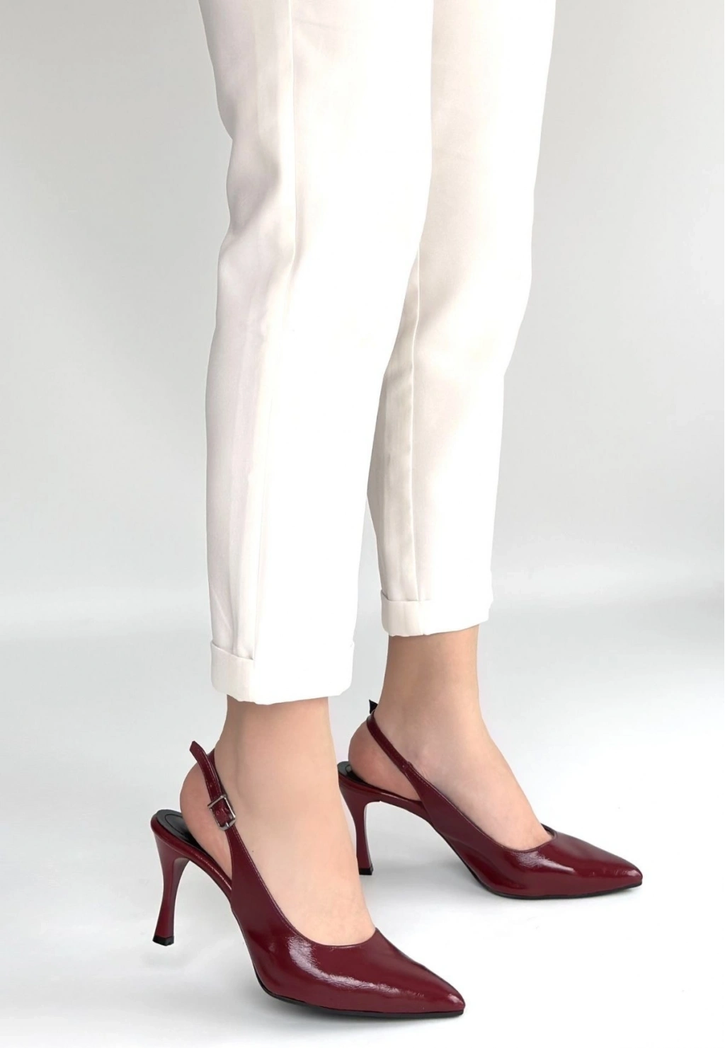 Uster Bordo Rugan Topuklu Ayakkabı