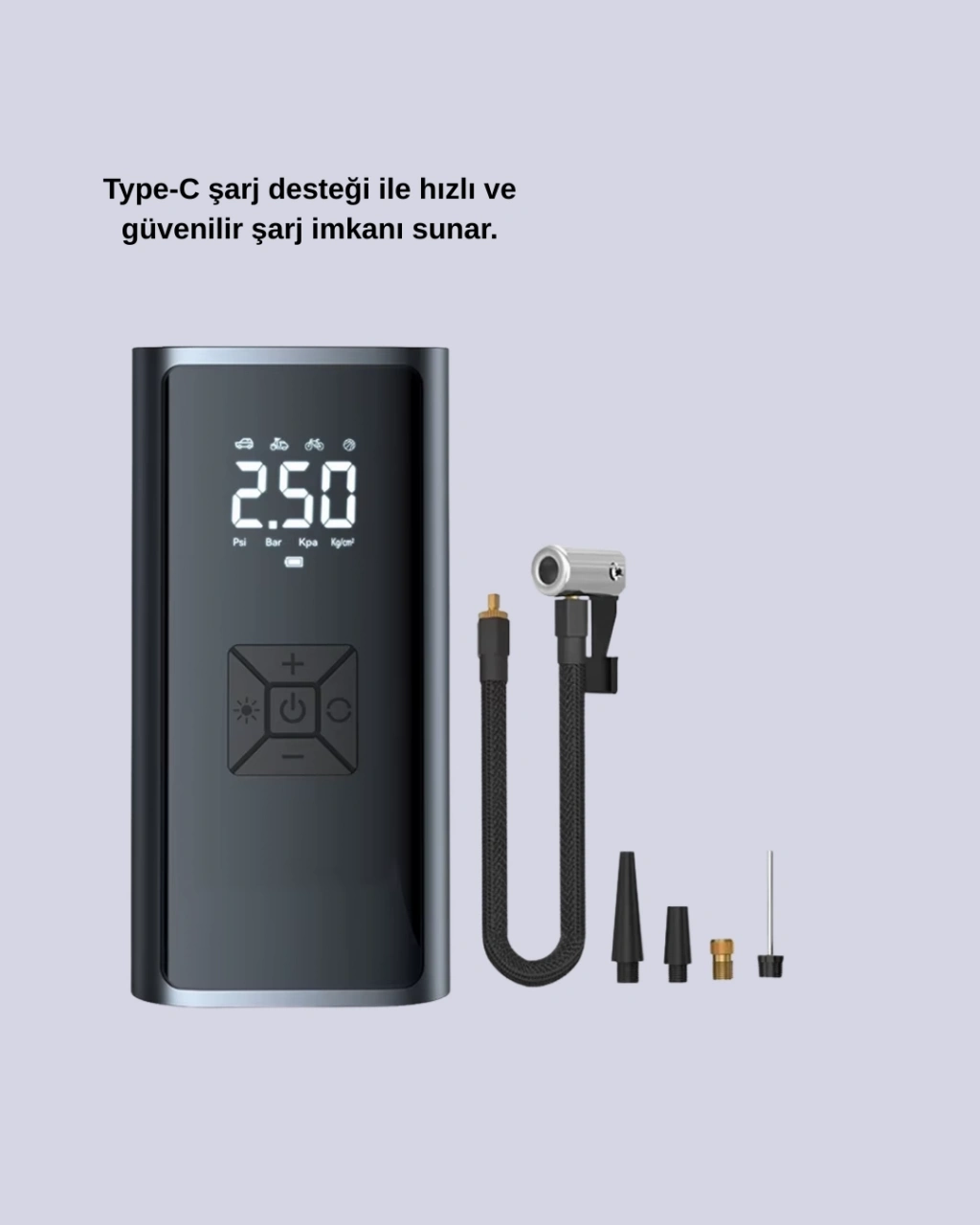 ® 12V Uyumlu Çok İşlevli Akıllı Araç Lastik Pompası