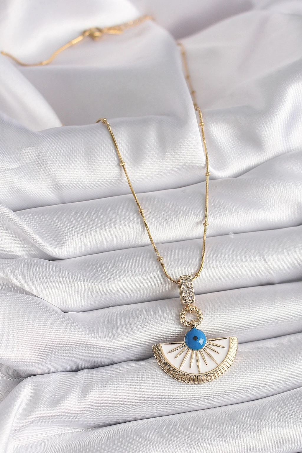 ® 316L Çelik Gold Renk Zincir Zirkon Taş Detaylı Nazar Boncuk Göz Model Kadın Kolye