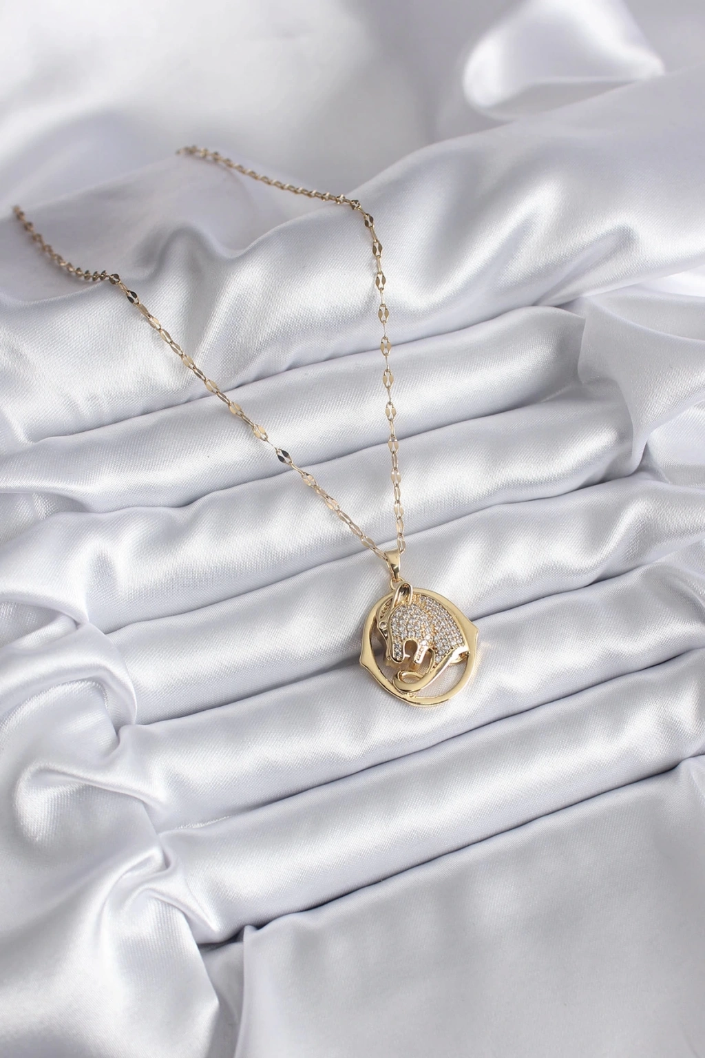 ® 316L Çelik Gold Renk Zirkon Taşlı Jaguar Model Kadın Kolye