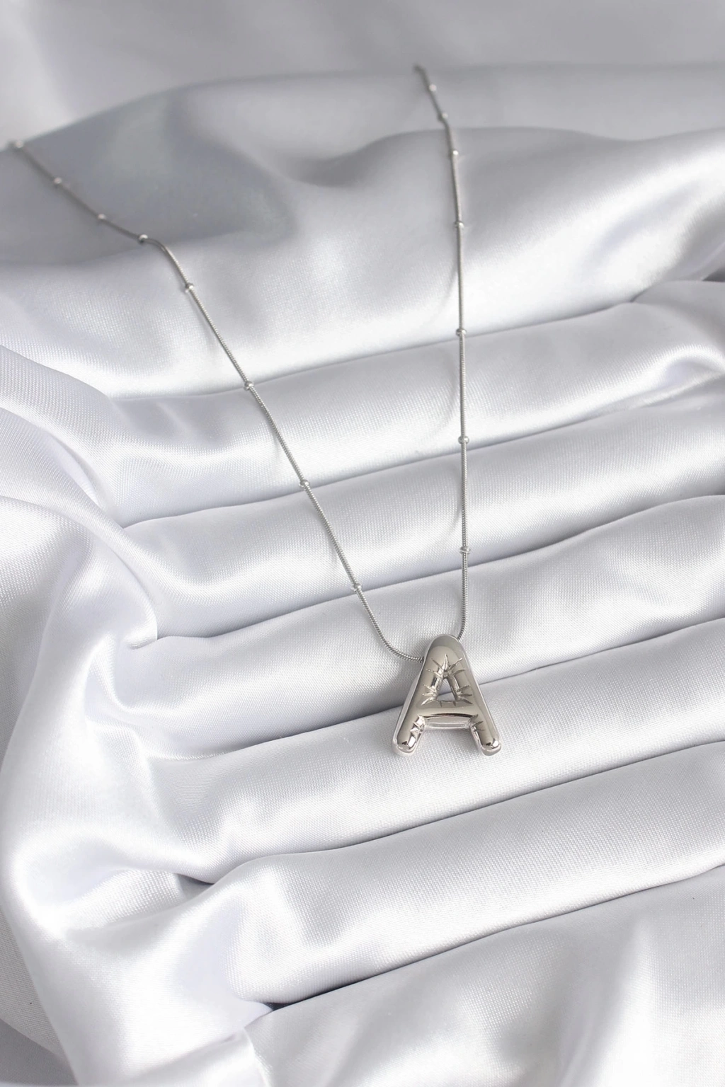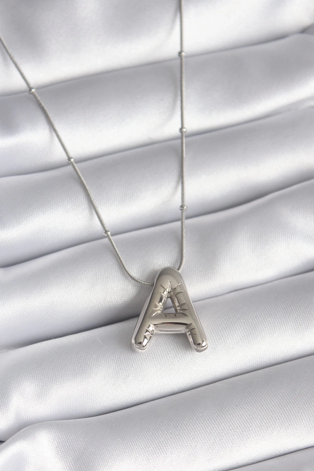 ® 316L Çelik Gümüş Renk Bubble "A" Harf Model Kadın Kolye