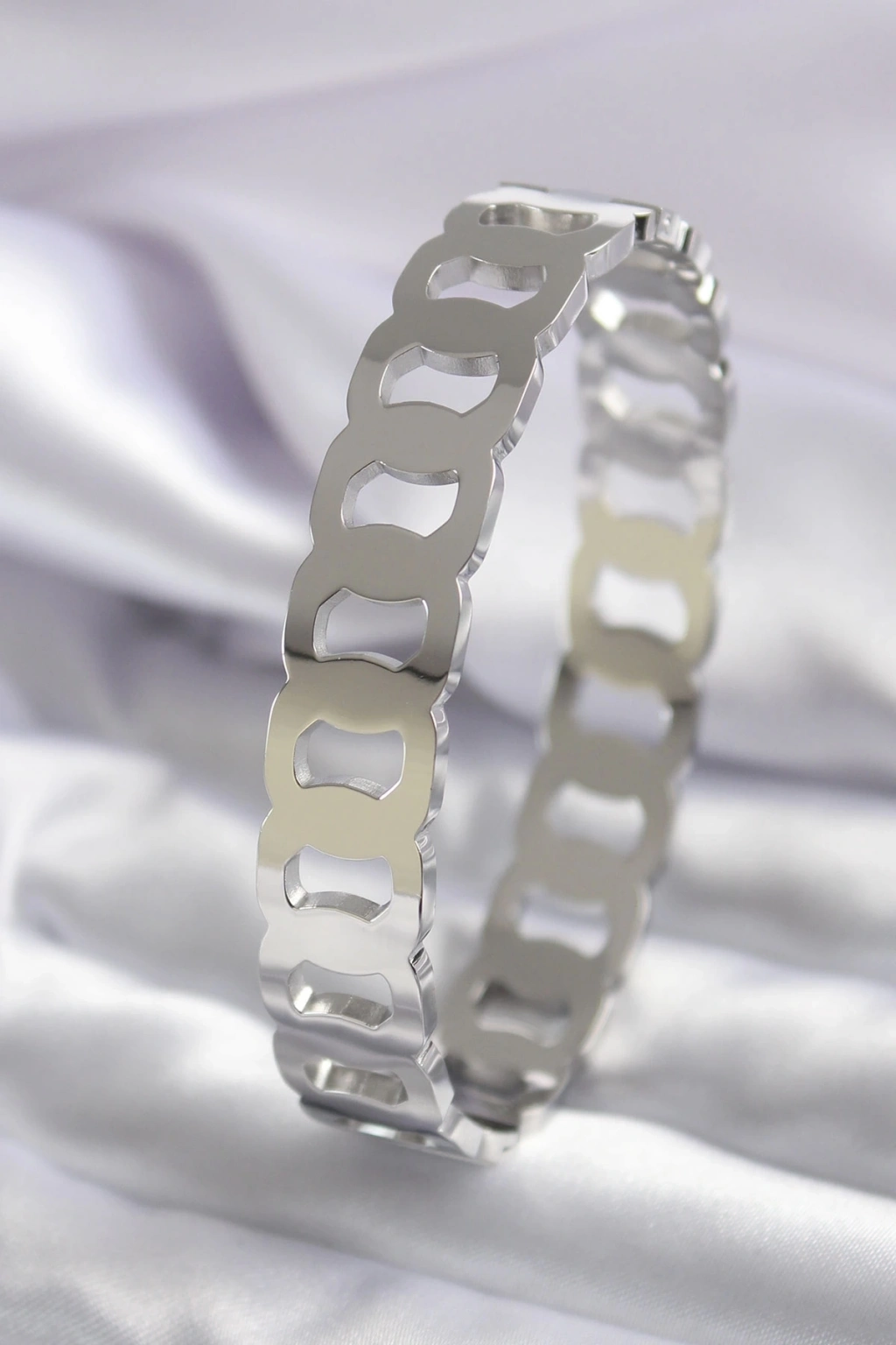 ® 316L Çelik Gümüş Renk Geçme Halka Model Kadın Kelepçe