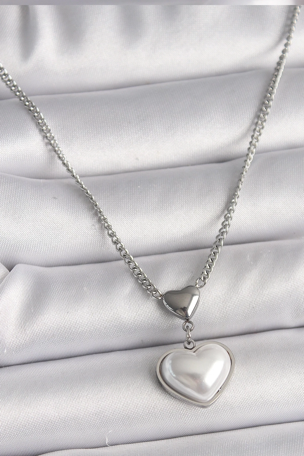 ® 316L Çelik Gümüş Renk Zincir 3D Kalp Model Kadın Kolye