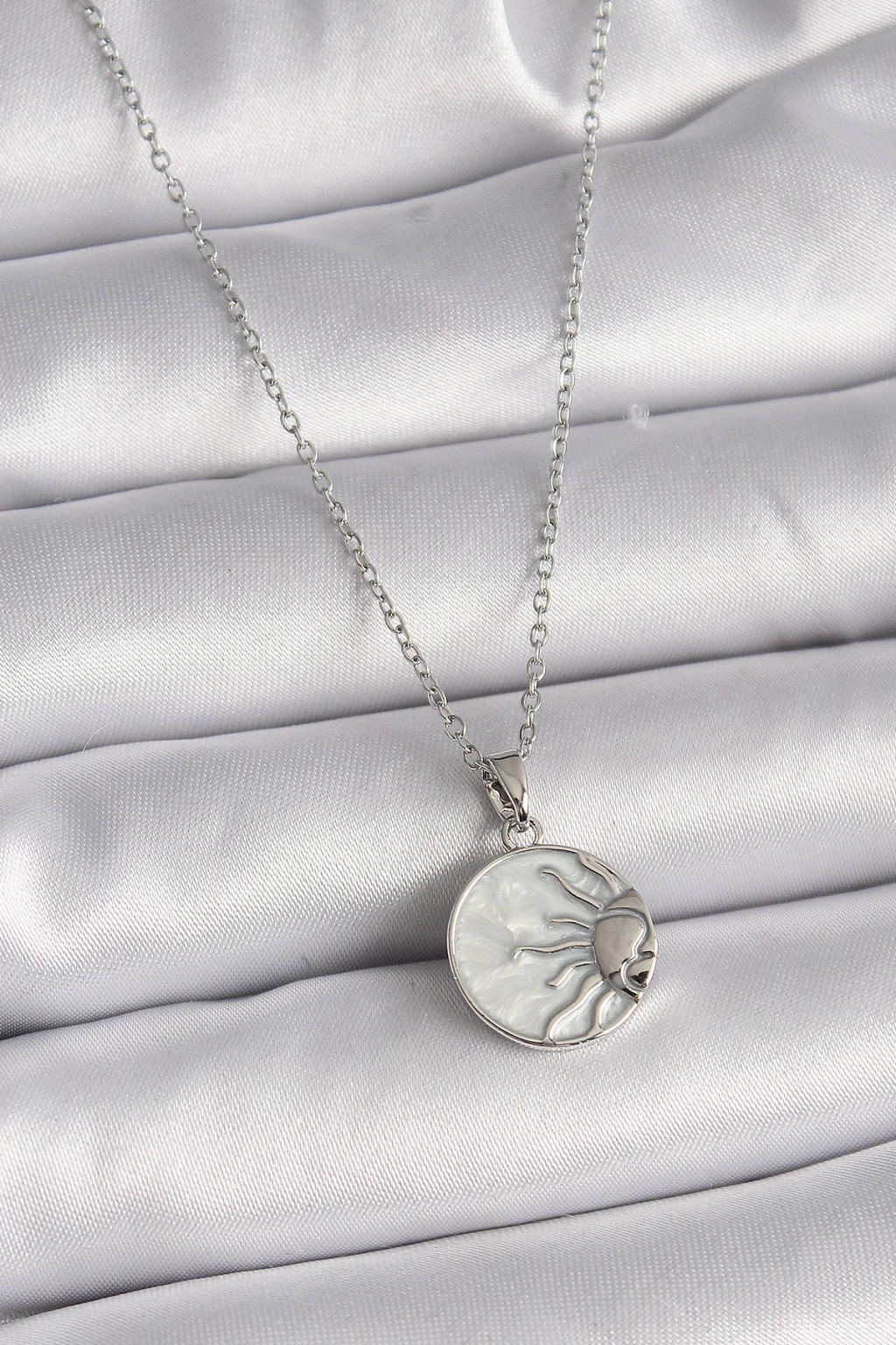 ® 316L Çelik Gümüş Renk Zincir Beyaz Sedefli Gün Batımı Model Kadın Kolye