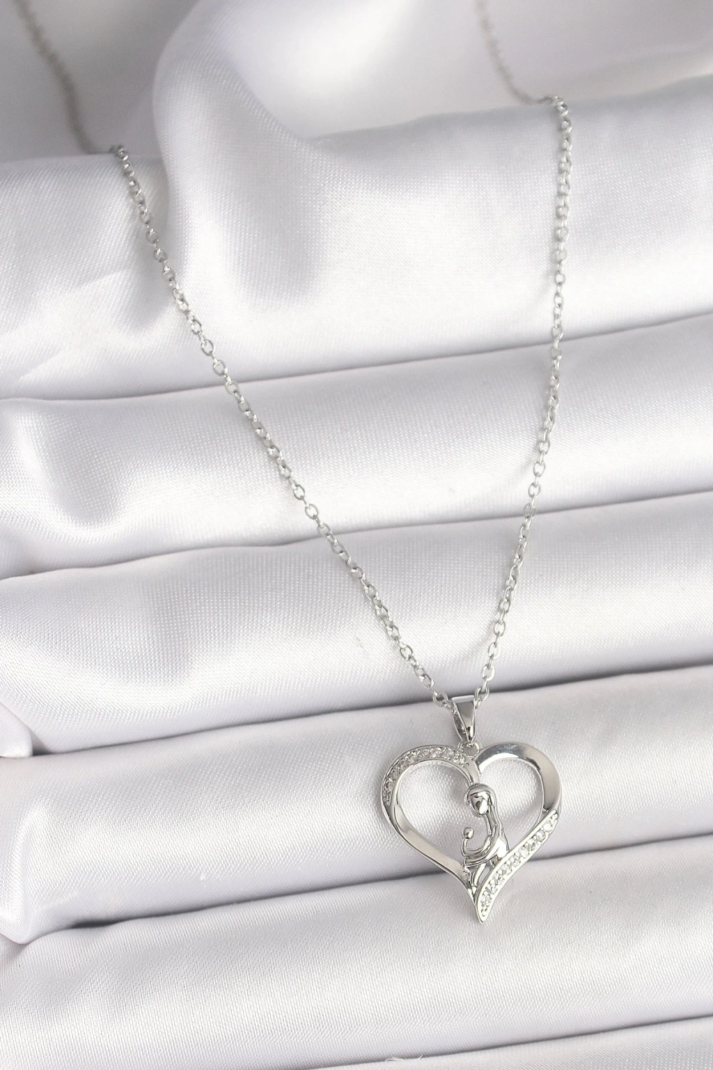 ® 316L Çelik Gümüş Renk Zincir Zirkon Taş Detaylı Kalp Model Kadın Kolye