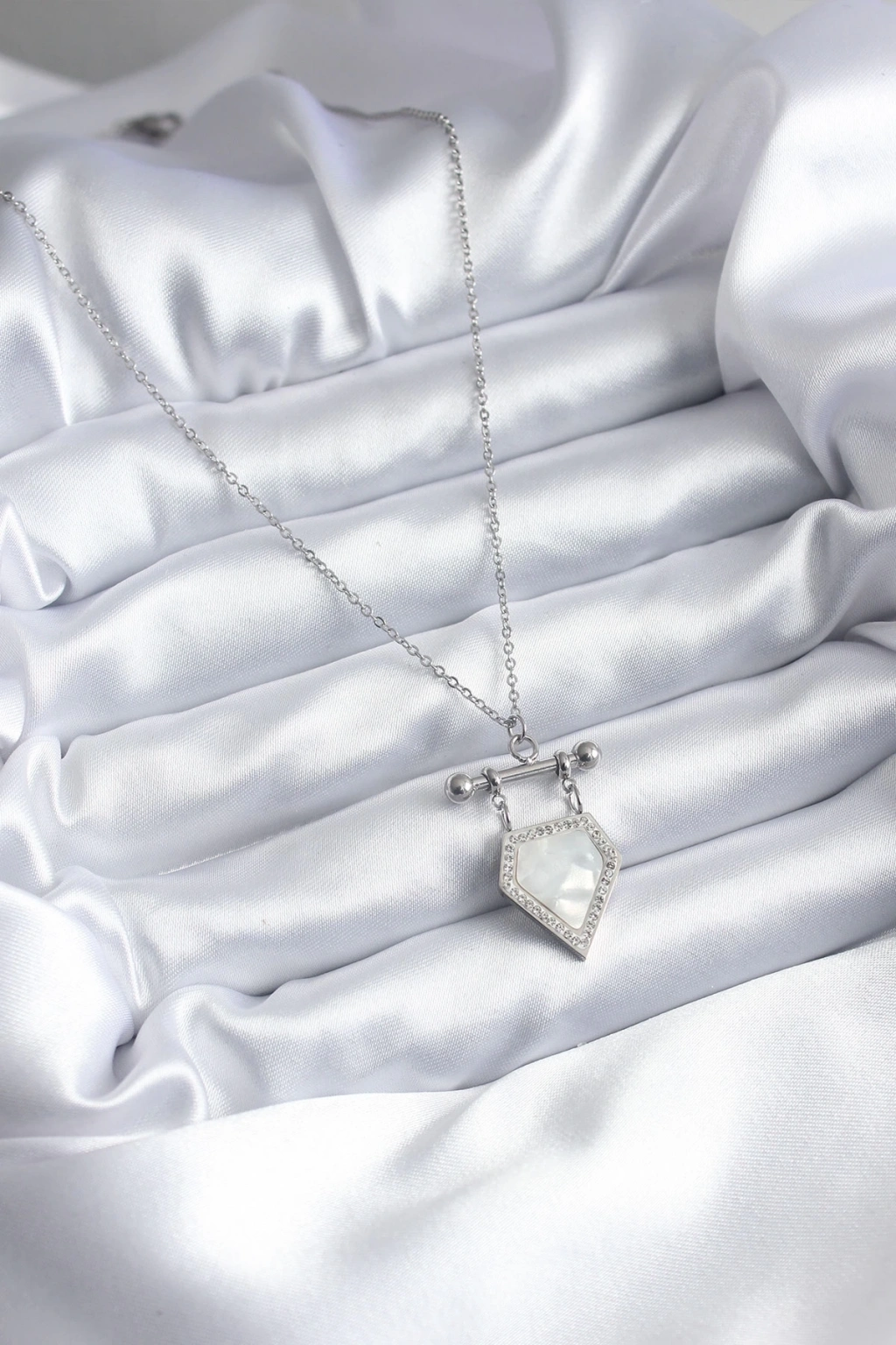 ® 316L Çelik Gümüş Renk Zirkon Taş Detay Kadın Kolye