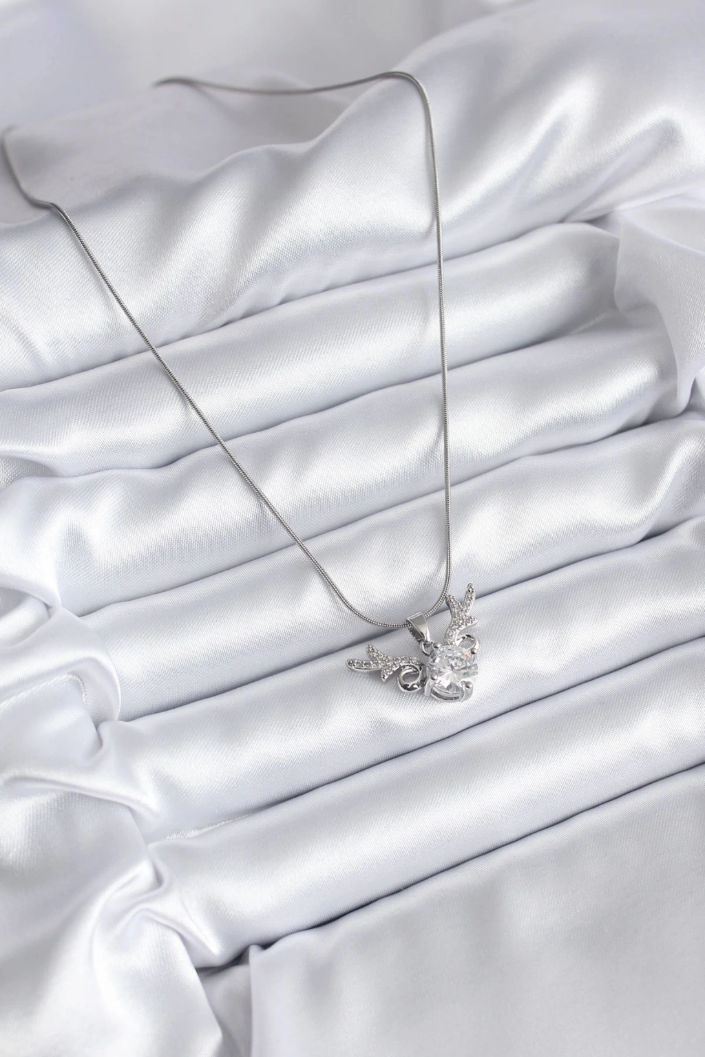 ® 316L Çelik Gümüş Renk Zirkon Taşlı Boynuz Model Kadın Kolye