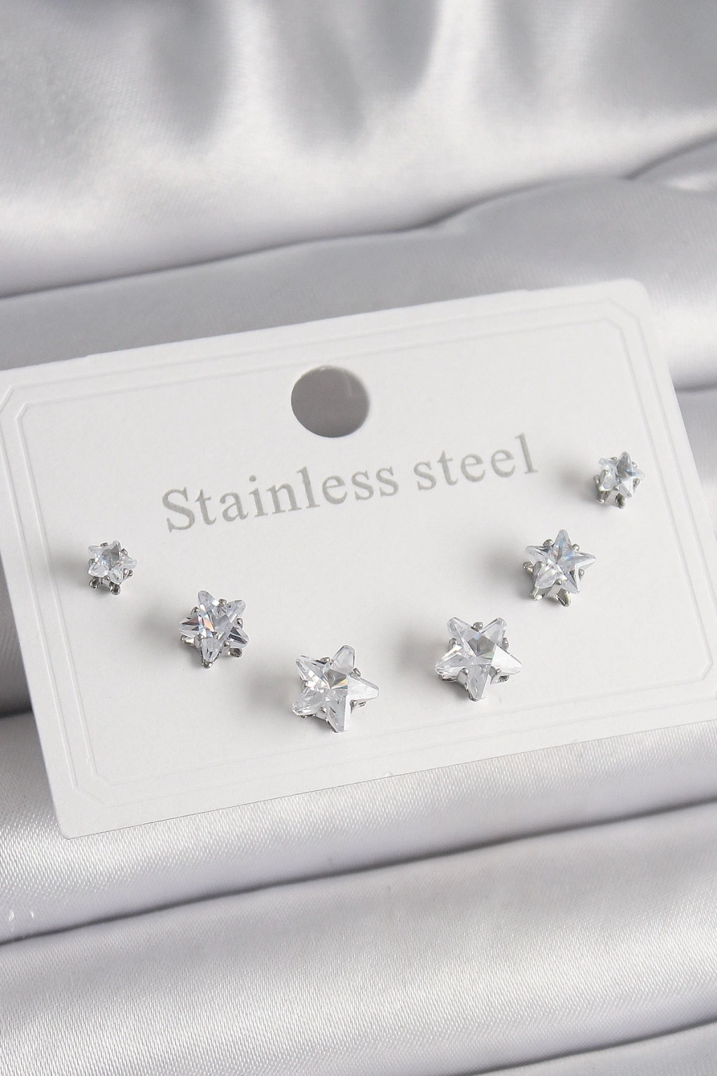 ® 316L Çelik Gümüş Renk Zirkon Taşlı Yıldız Model Kadın Küpe Seti