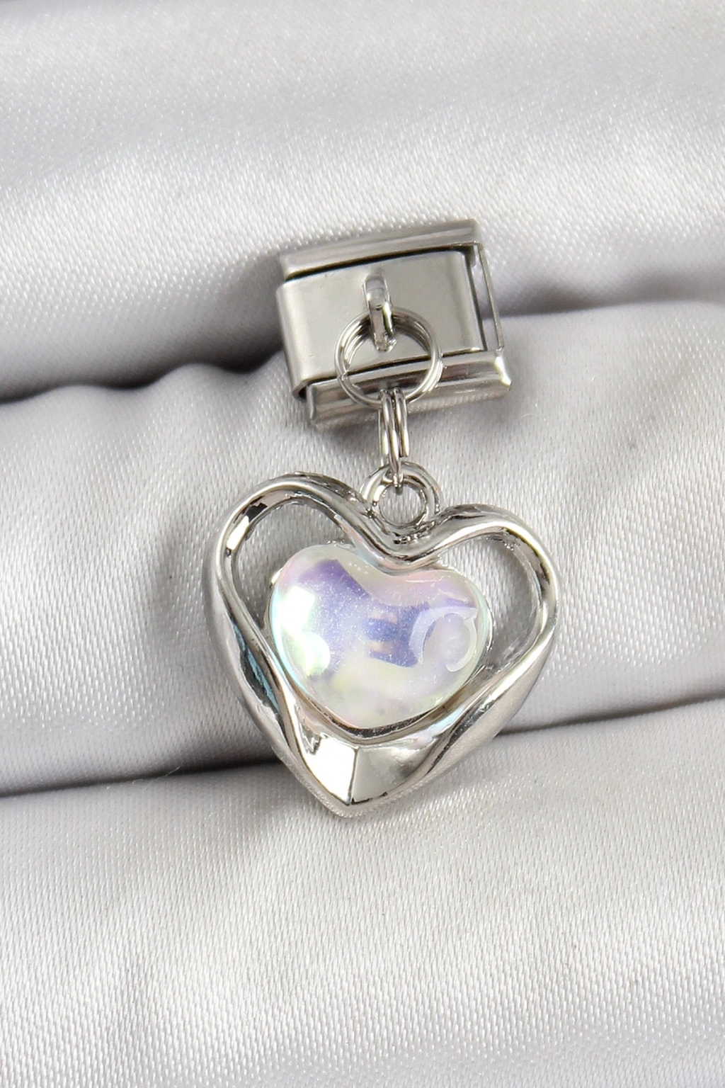 ® 316L Çelik Sallantılı Zirkon Taşlı Kalp Model Gümüş Renk Nomination Charm