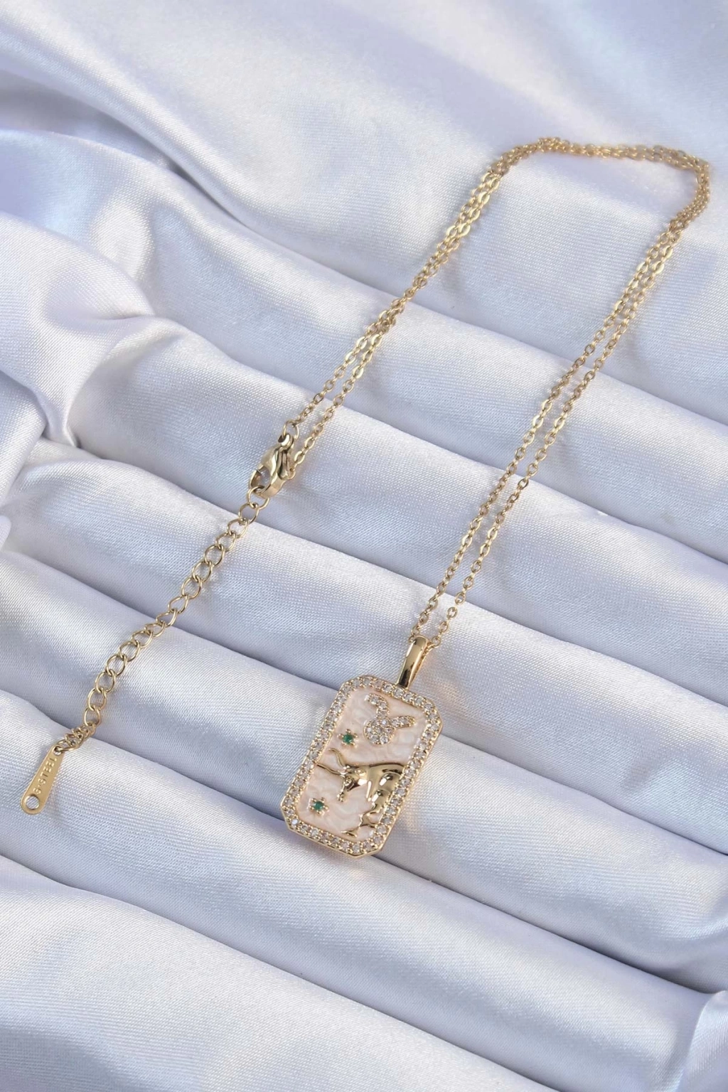 ® 316L Çelik Zincir Altın Renk Zirkon Taşlı Boğa Figürlü Tarot Kolye