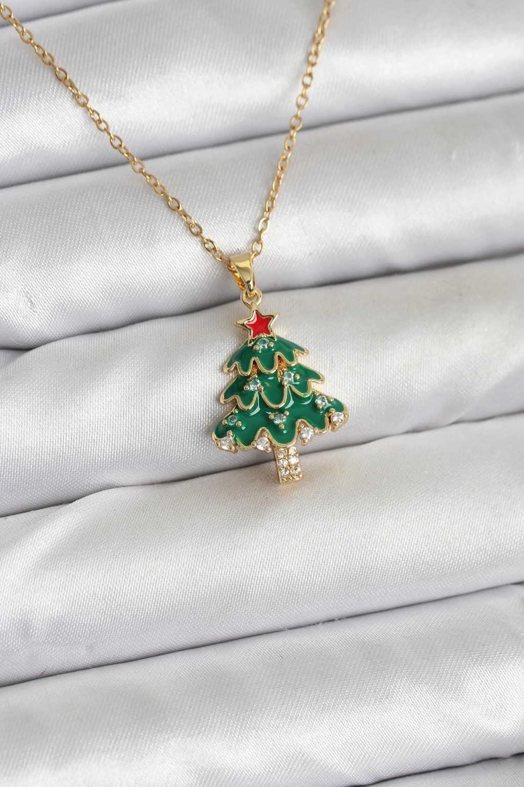 ® 316L Çelik Zincir Gold Renk Çam Ağacı Model Yılbaşı Temalı Kadın Kolye