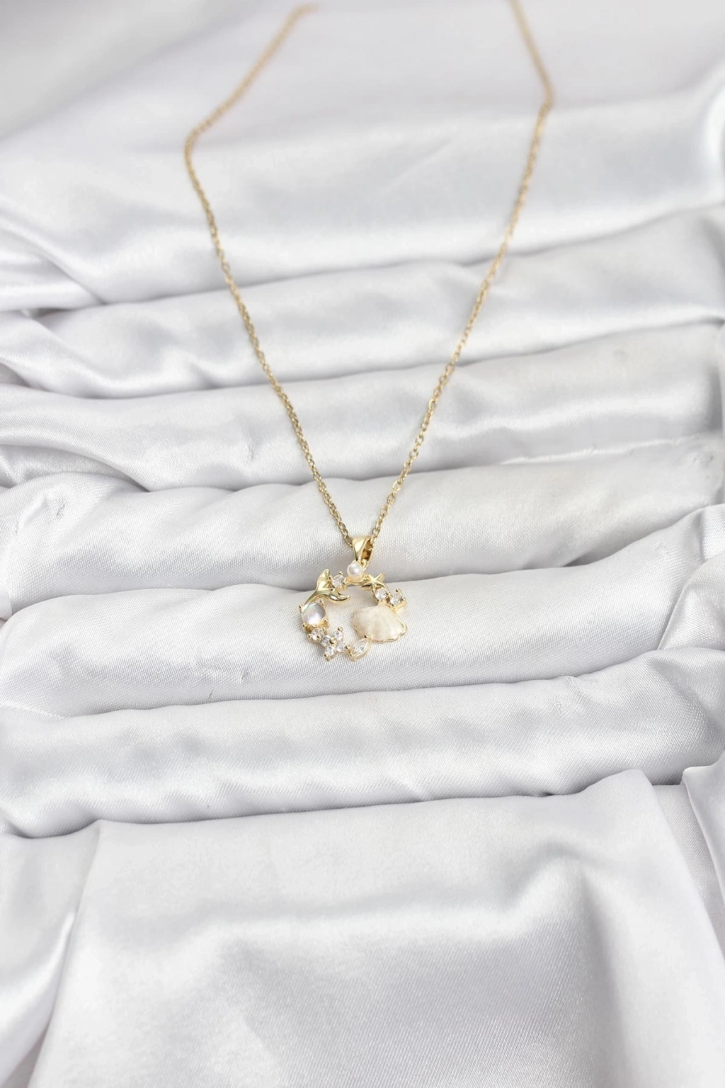 ® 316L Çelik Zincir Gold Renk Deniz Tema Model Zirkon Taşlı Kadın Kolye