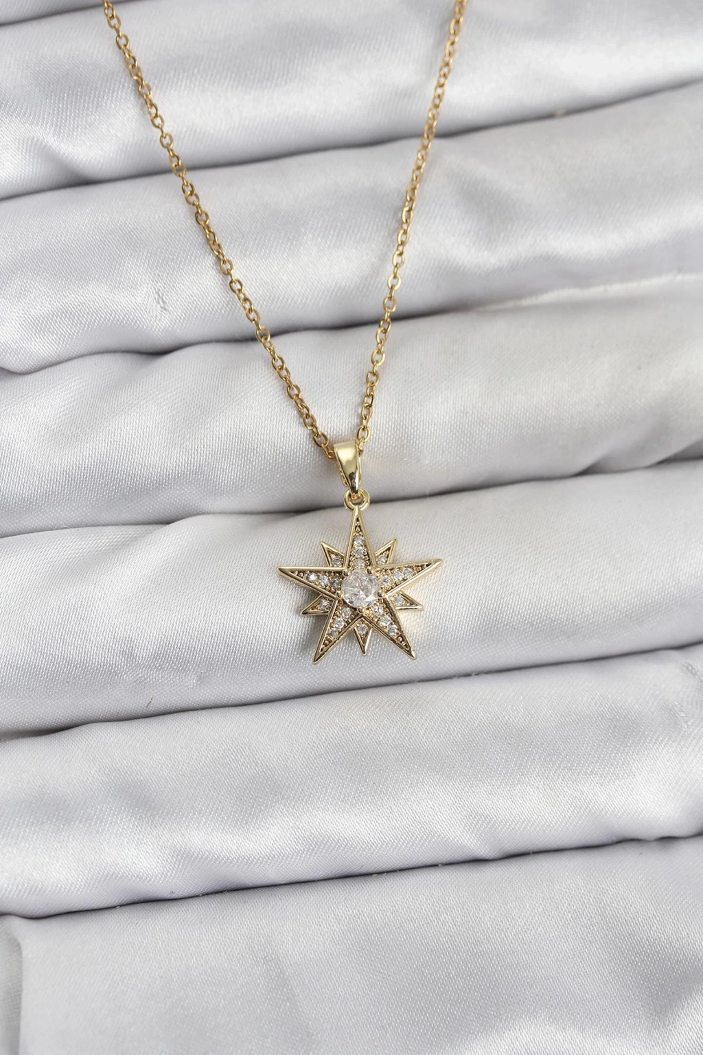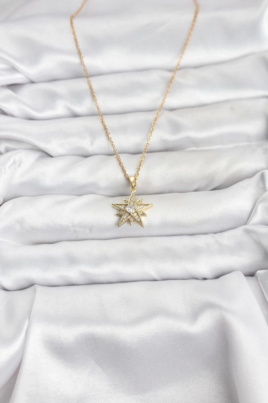 ® 316L Çelik Zincir Gold Renk Yıldız Model Zirkon Taşlı Kadın Kolye