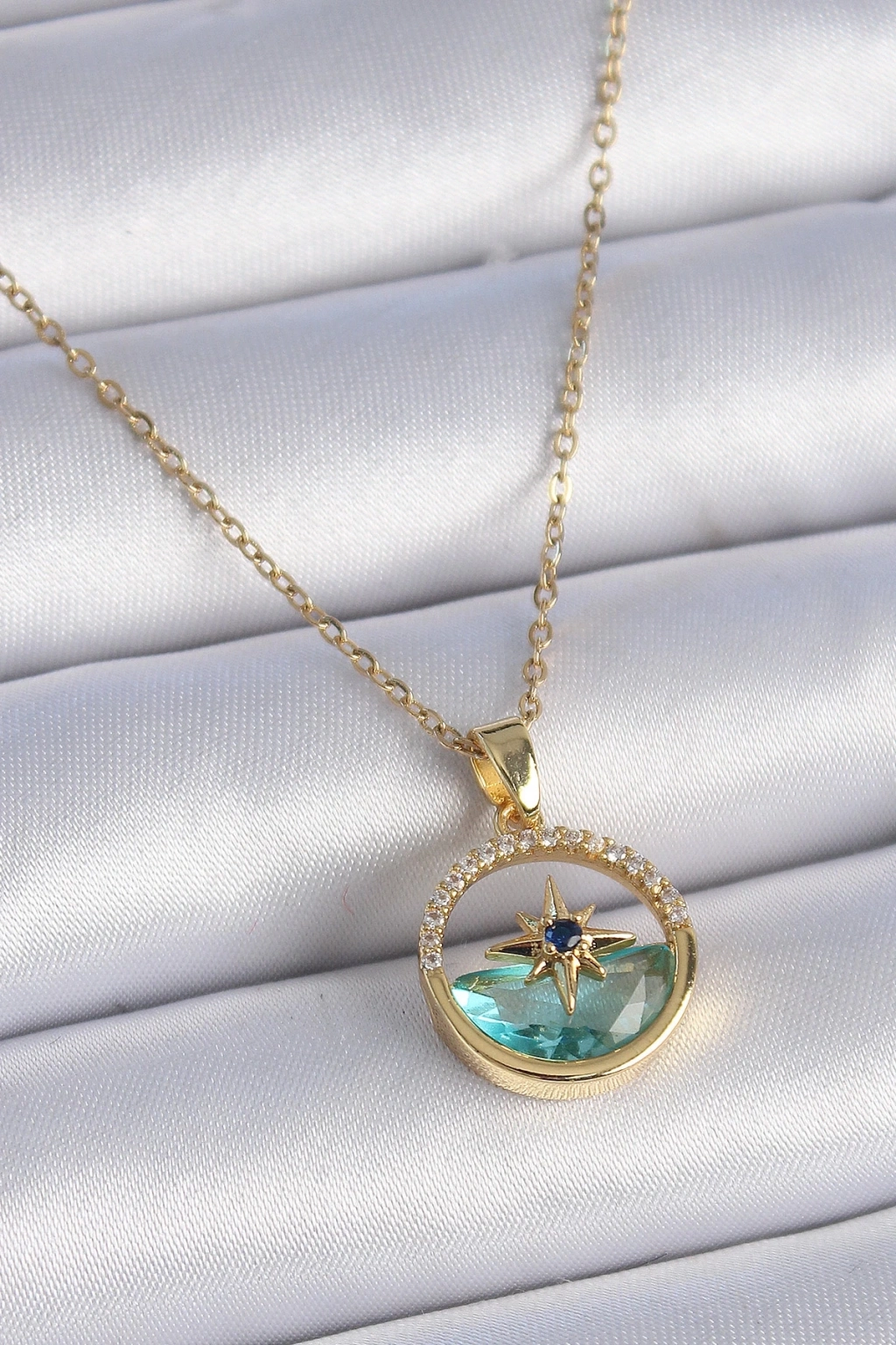 ® 316L Çelik Zincir Gold Renk Zirkon Taşlı Deniz Görünüm Kutup Yıldız Model Kadın Kolye