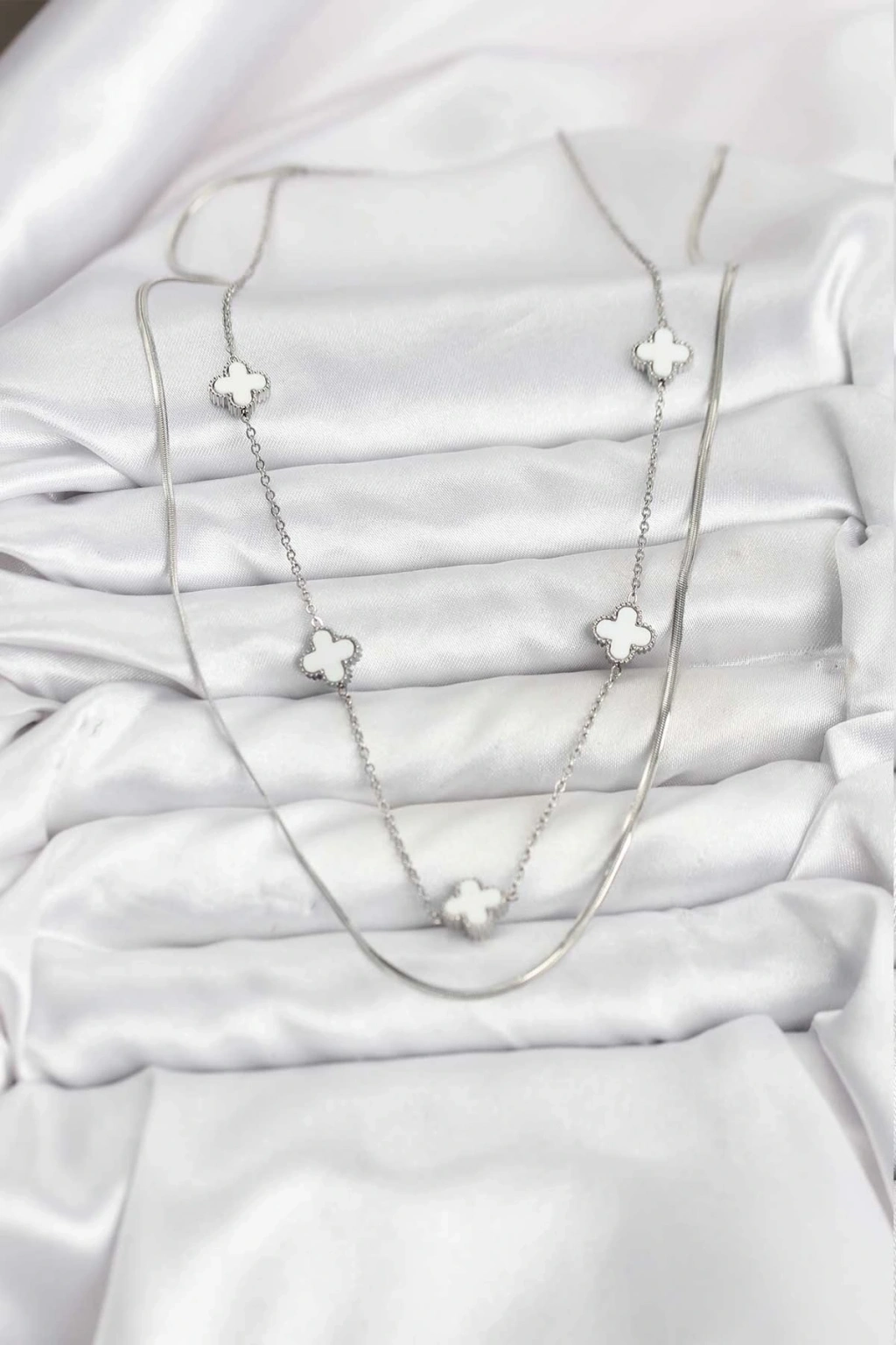 ® 316L Çelik Zincir Gümüş Renk İtalyan Zincirli Yonca Model Kadın Kolye