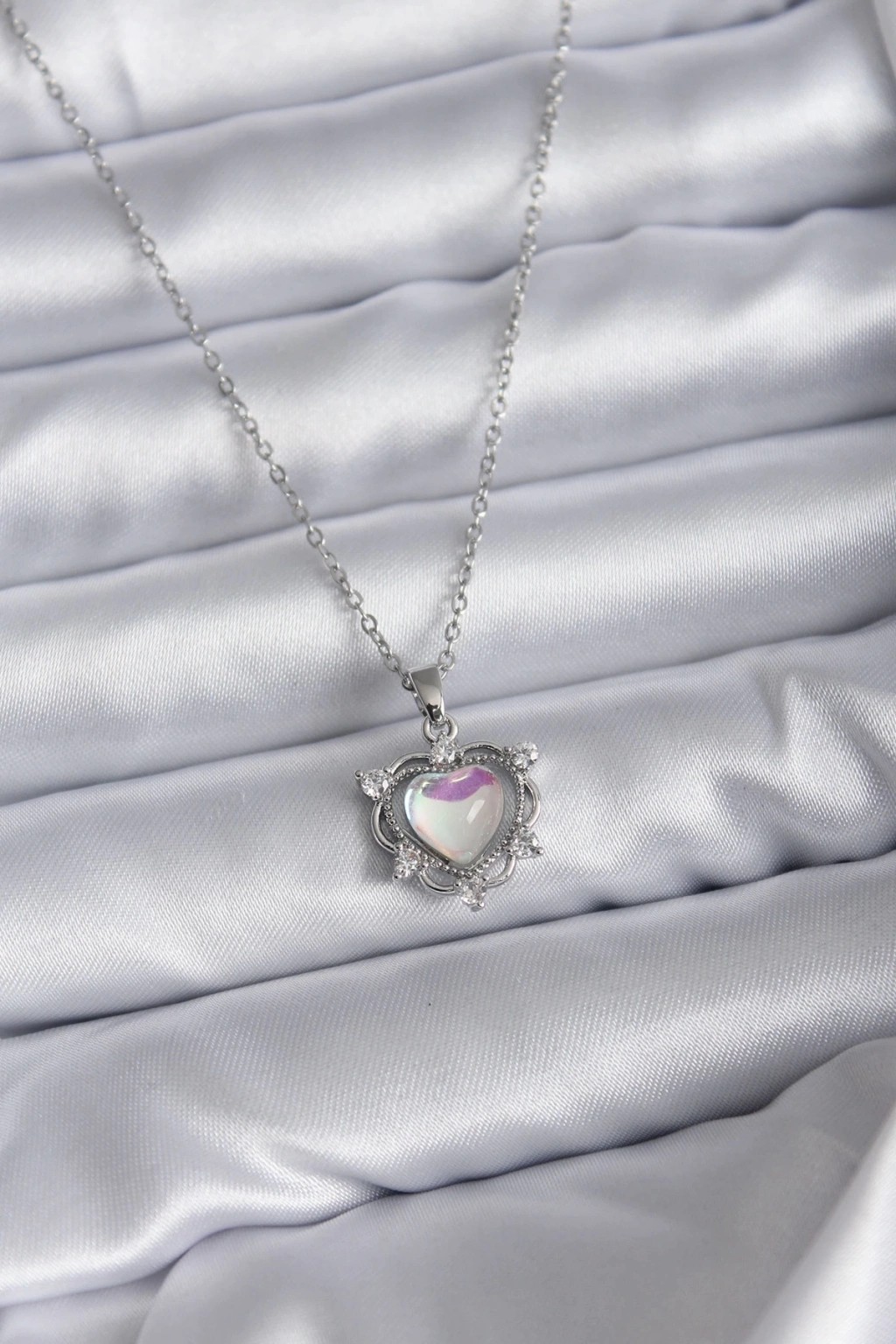 ® 316L Çelik Zincir Gümüş Renk Kalp Model Kadın Kolye
