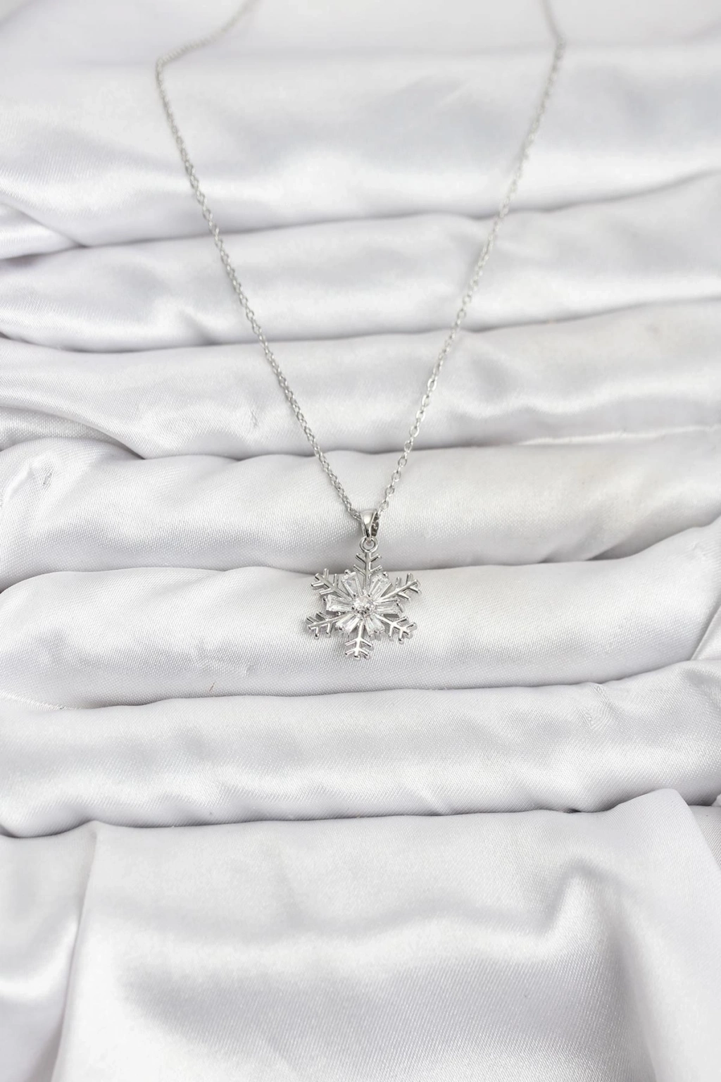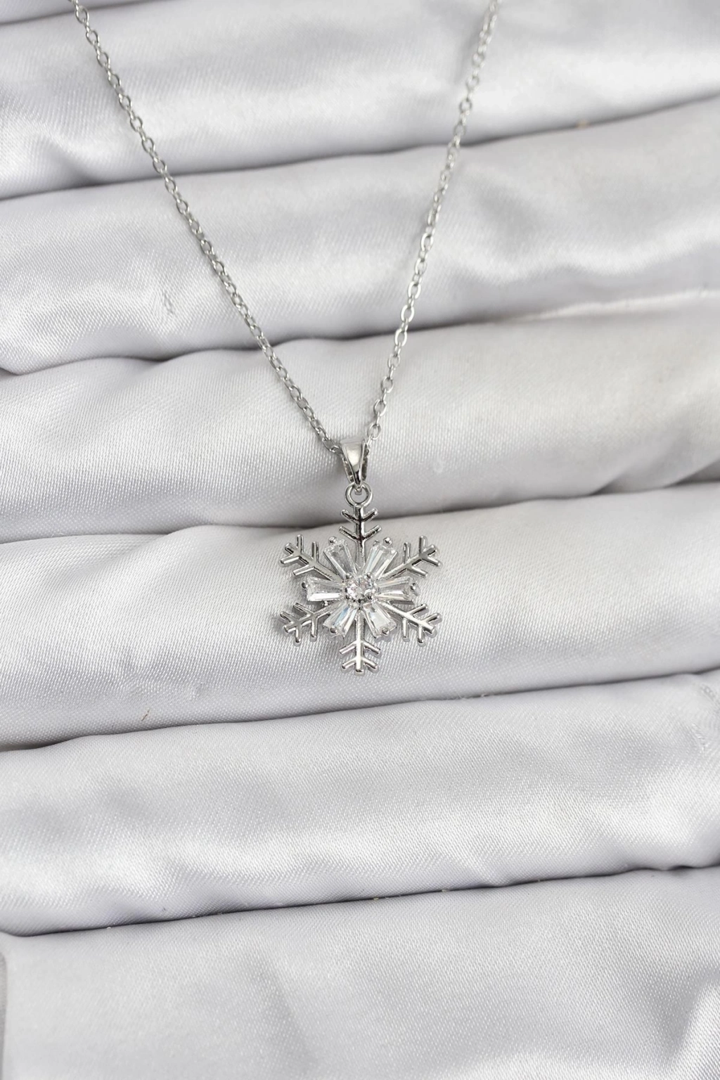 ® 316L Çelik Zincir Gümüş Renk Kar Tanesi Model Zirkon Taşlı Kadın Kolye