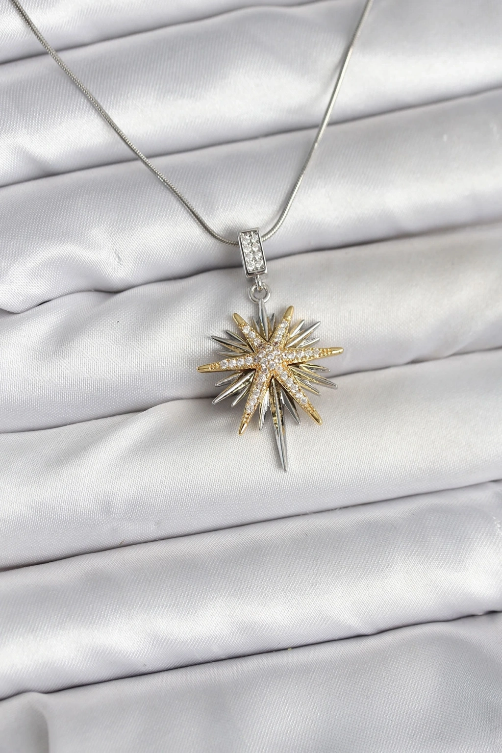 ® 316L Çelik Zincir Gümüş Renk Kutup Yıldızı Model Kadın Kolye