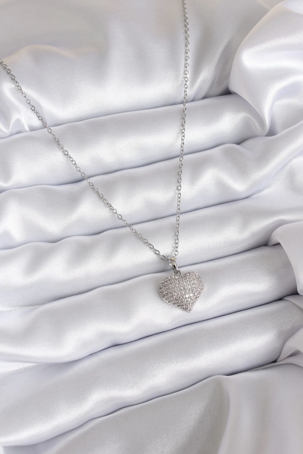 ® 316L Çelik Zincir Gümüş Renk Zirkon Taş Detay Kalp Model Kadın Kolye