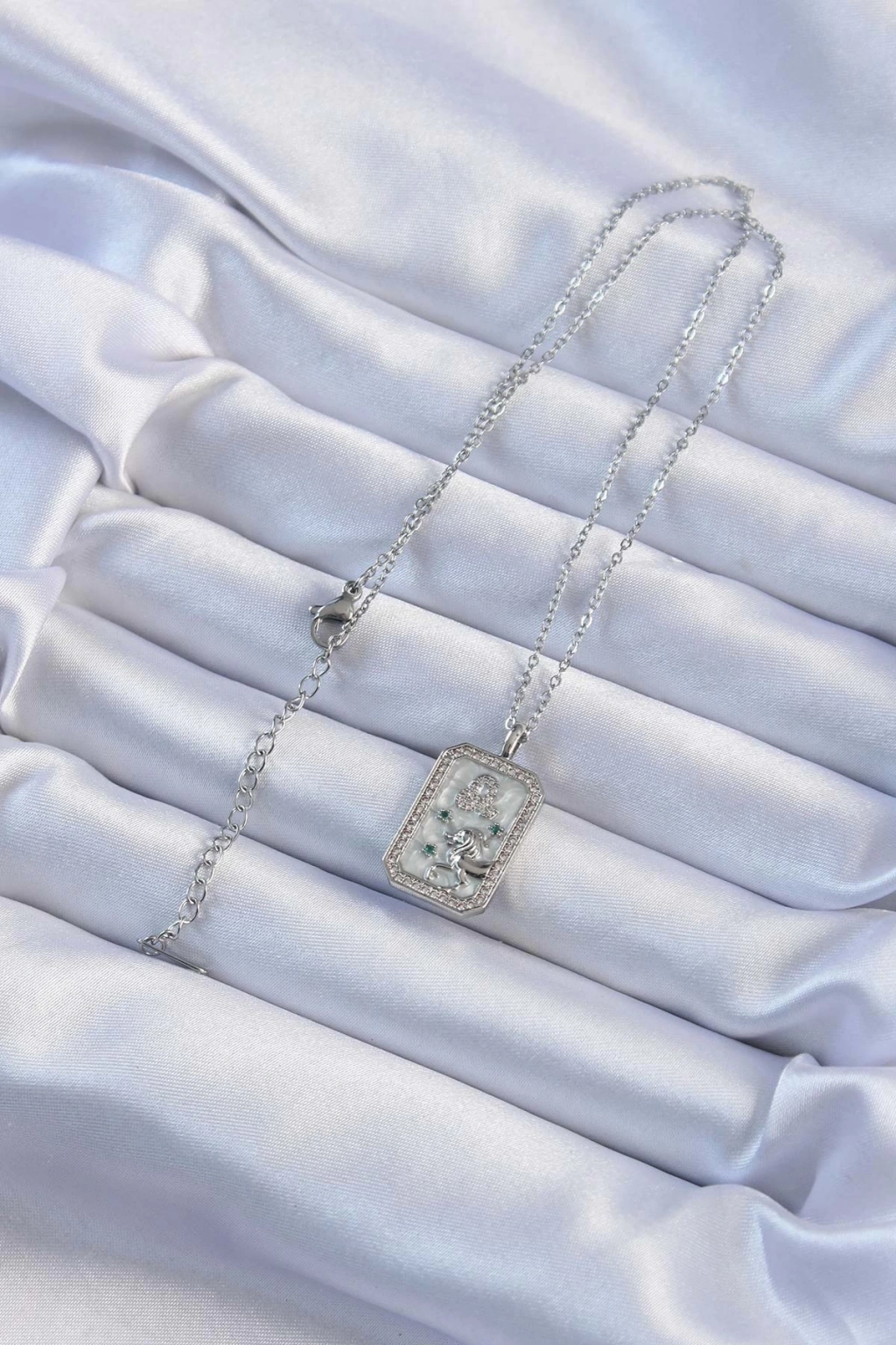 ® 316L Çelik Zincir Gümüş Renk Zirkon Taşlı Aslan Figürlü Tarot Kolye