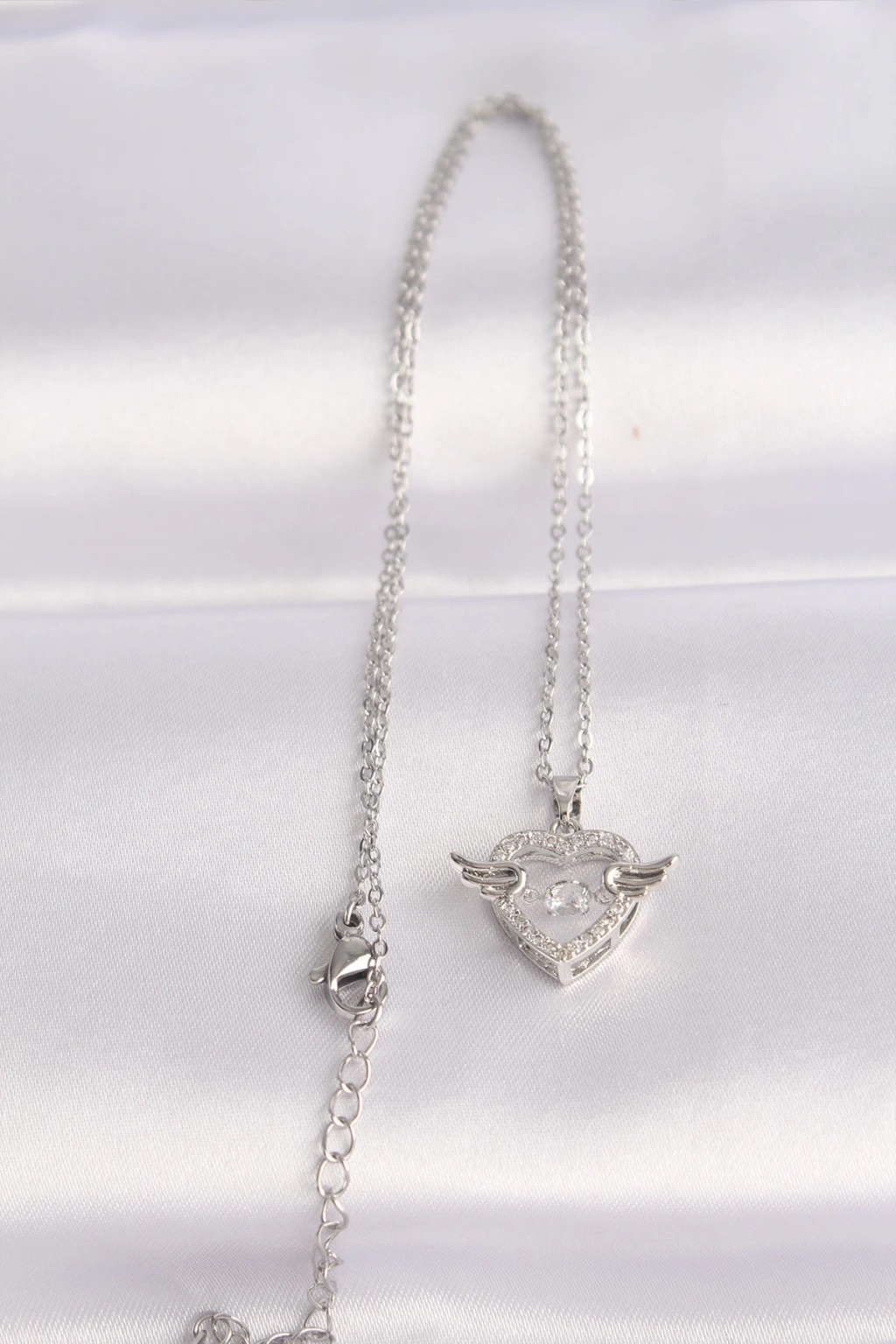 ® 316L Çelik Zincir Gümüş Renk Zirkon Taşlı Kanatlı Kalp Kolye