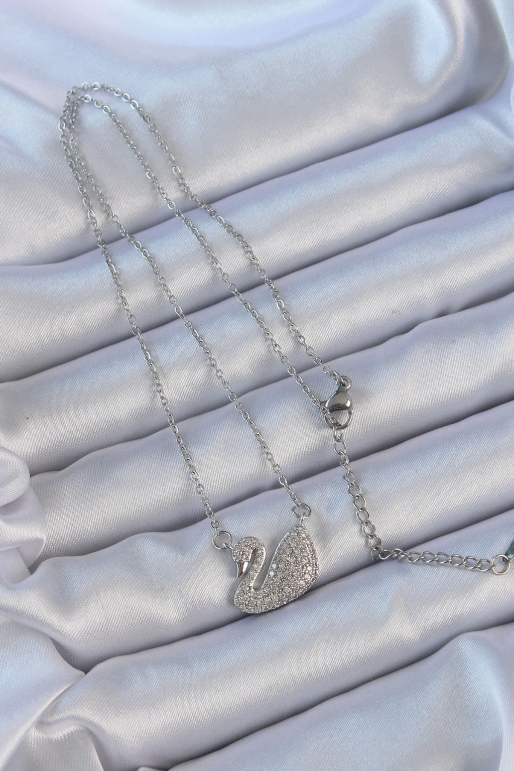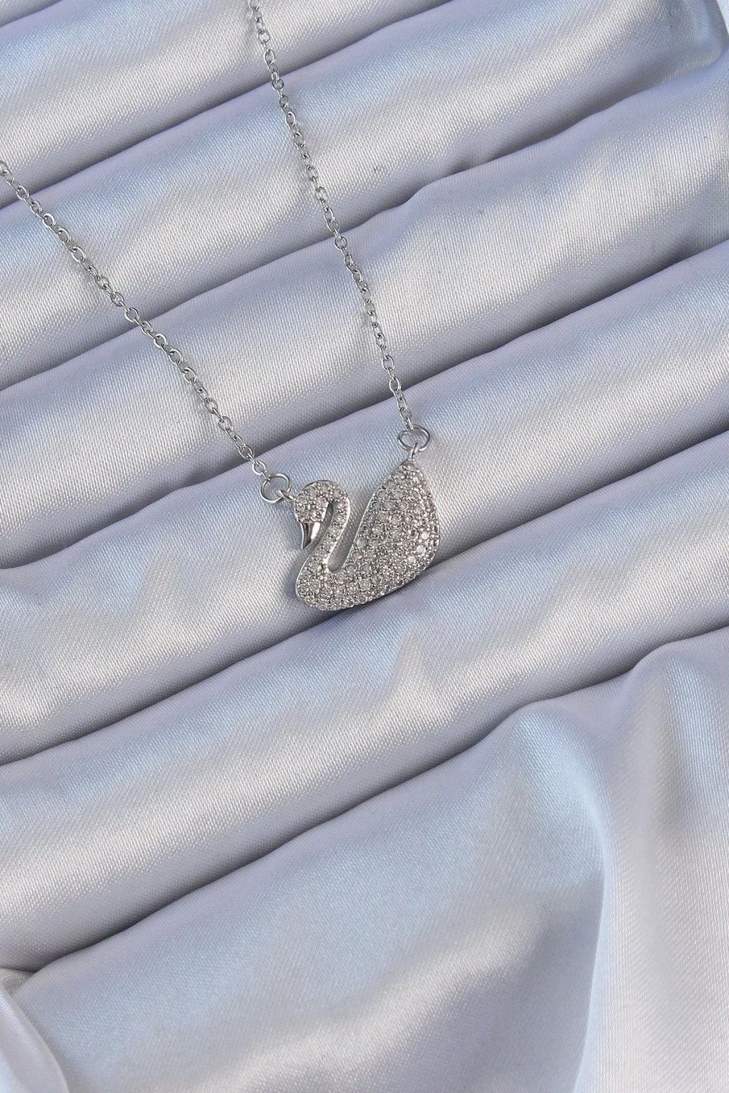 ® 316L Çelik Zincir Gümüş Renk Zirkon Taşlı Kuğu Kolye