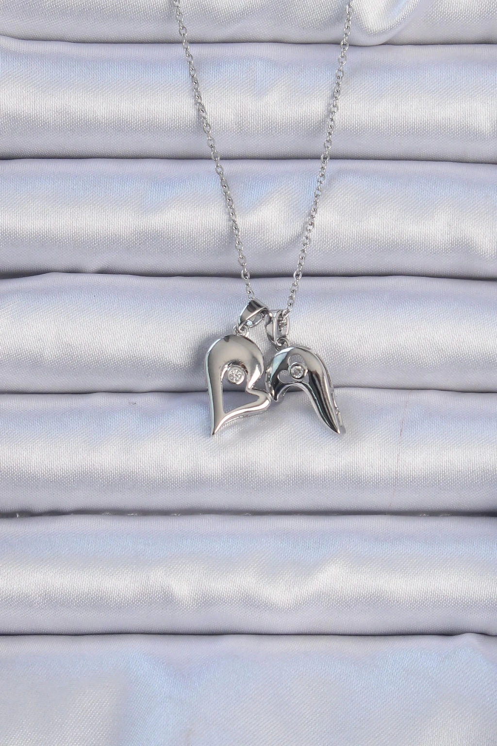 ® 316L Çelik Zincir Gümüş Renk Zirkon Taşlı Mıknatıslı Kalp Kolye