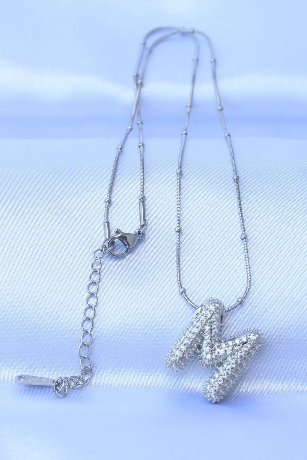 ® 316L Çelik Zincirli Zirkon Taşlı M Harfli Gümüş Renk Bubble Kolye