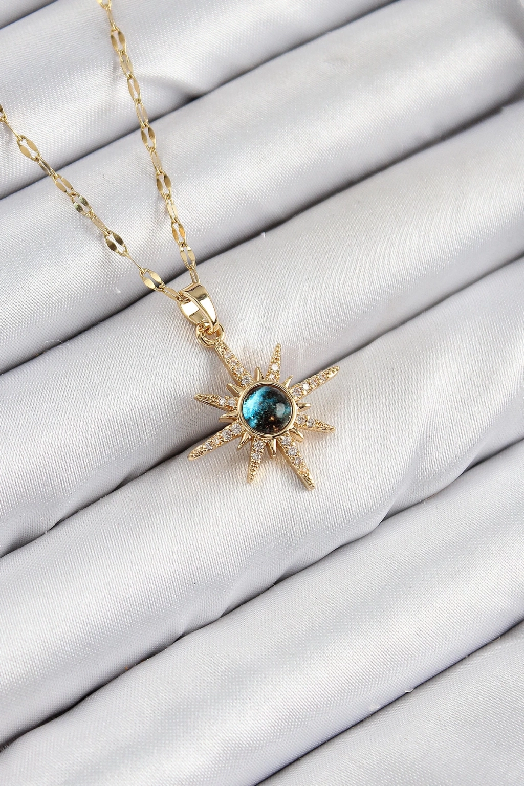 ® 316L Çelik Zirkon Taşlı Kutup Yıldızı Model Gold Renk Kadın Kolye