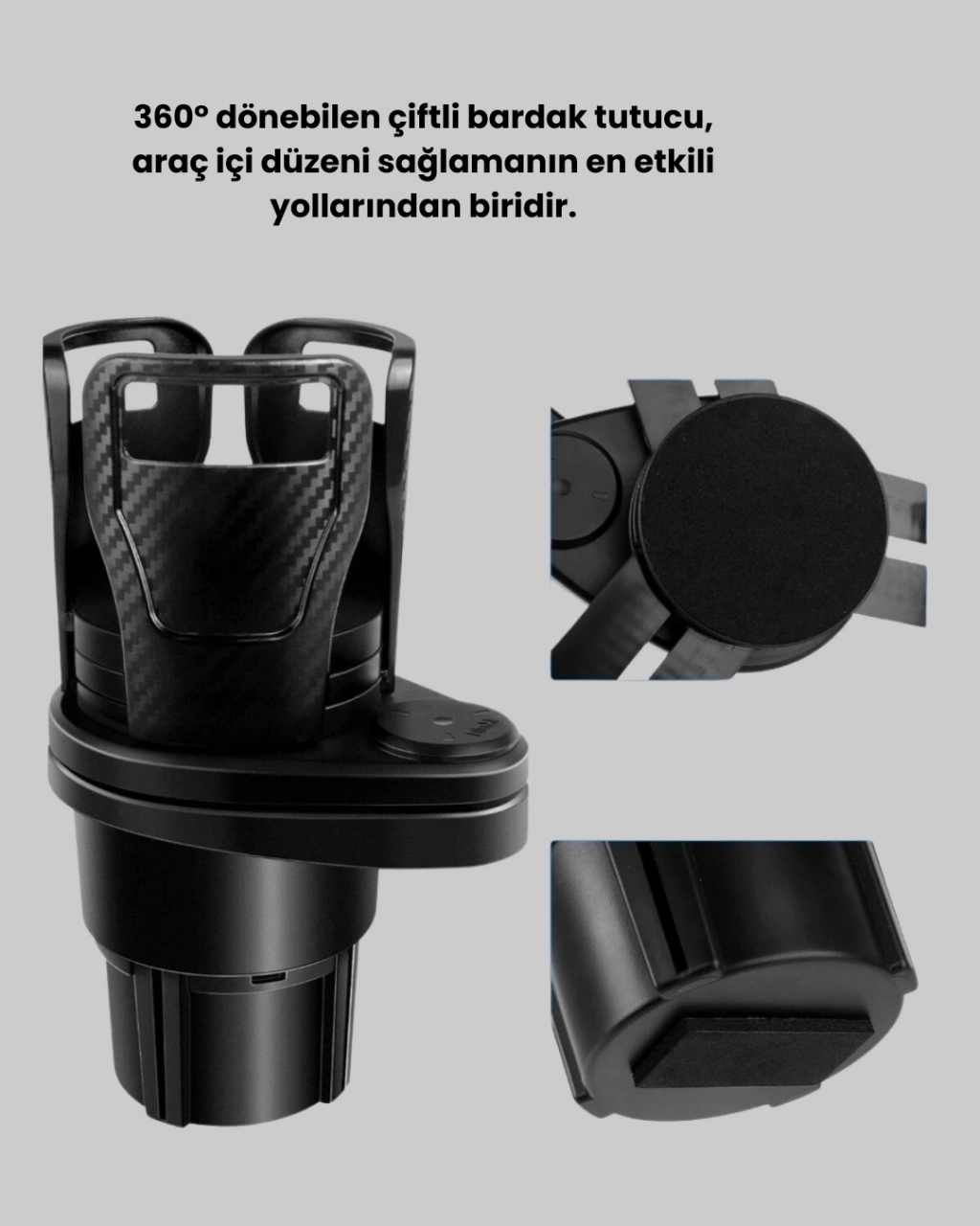 Araç içi kullanım konforunu artırmak için tasarlanan bu set, günlük sürüşlerden uzun yolculuklara kadar her senaryoda büyük kolaylık sağlar. Çiftli bardak tutucu, 360° döner mekanizması sayesinde bardakları istediğiniz açıya çevirmenize olanak tanır. Aile kullanımı, uzun yol ve şehir içi trafikte pratik bir çözüm sunar. Sağlam yapısı sayesinde uzun ömürlü kullanım sağlar.Kablosuz ambiyans ışığı ise 7 farklı renk ve çoklu mod seçeneği ile araç içi atmosferi kişiselleştirmenize imkân tanır. Yumuşak ve göz yormayan LED aydınlatması, özellikle gece sürüşlerinde hem estetik hem de fonksiyonel bir kullanım sunar. Tek tuşla renk değiştirme ve döngü modu ile araç içinde modern bir ambiyans oluşturur.