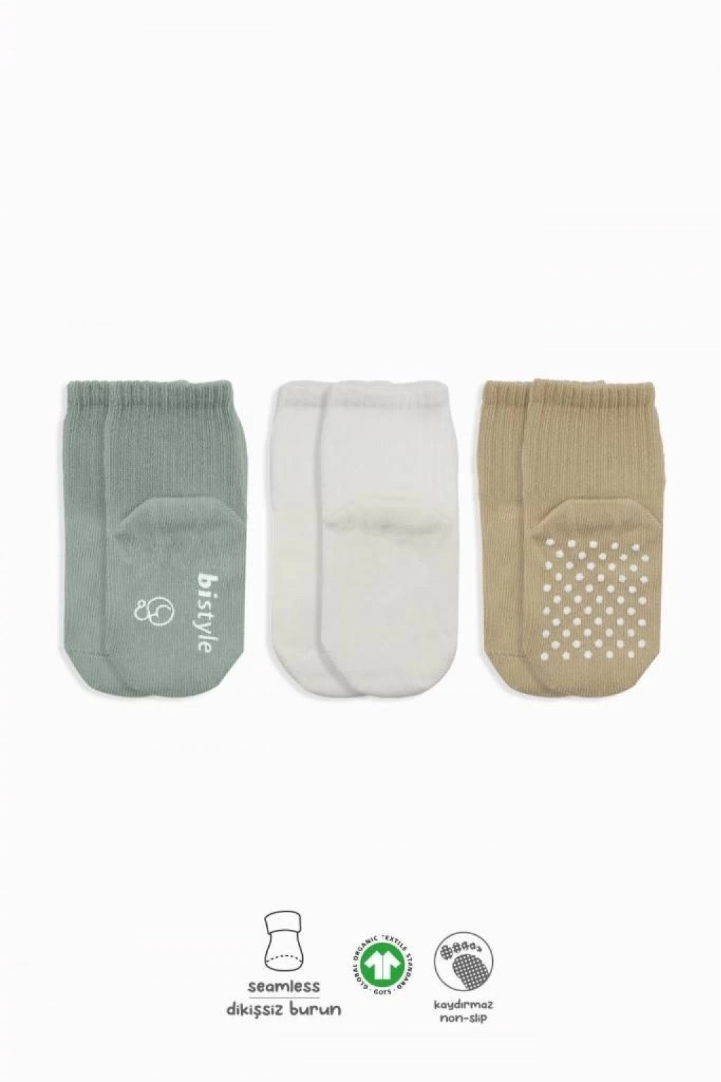 ® Basic Kaymaz Penye Soket Çorap 3'Lü BS10107 Nil Ekru Bej