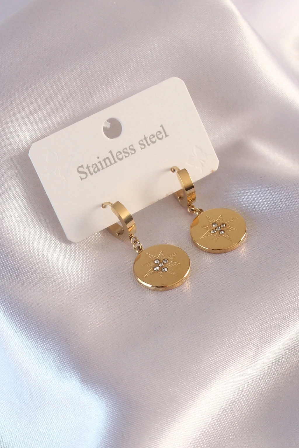 ® Çelik Gold Renk Kutup Yıldızı İşleme Zirkon Taşlı Kadın Küpe