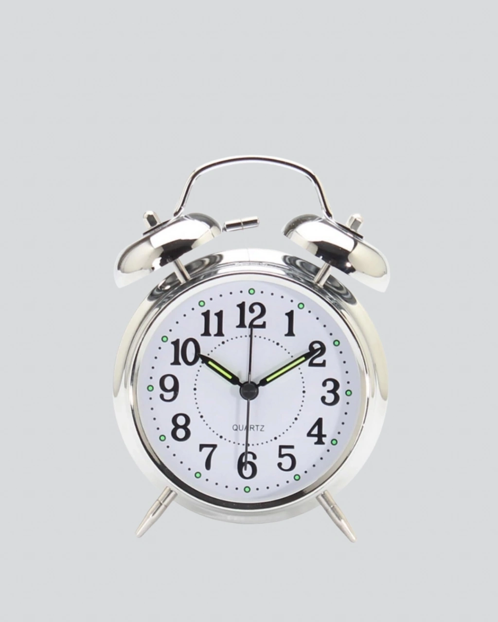 ® Dekoratif Gümüş Işıklı Alarmlı Masa Saati Sessiz Mekanizma