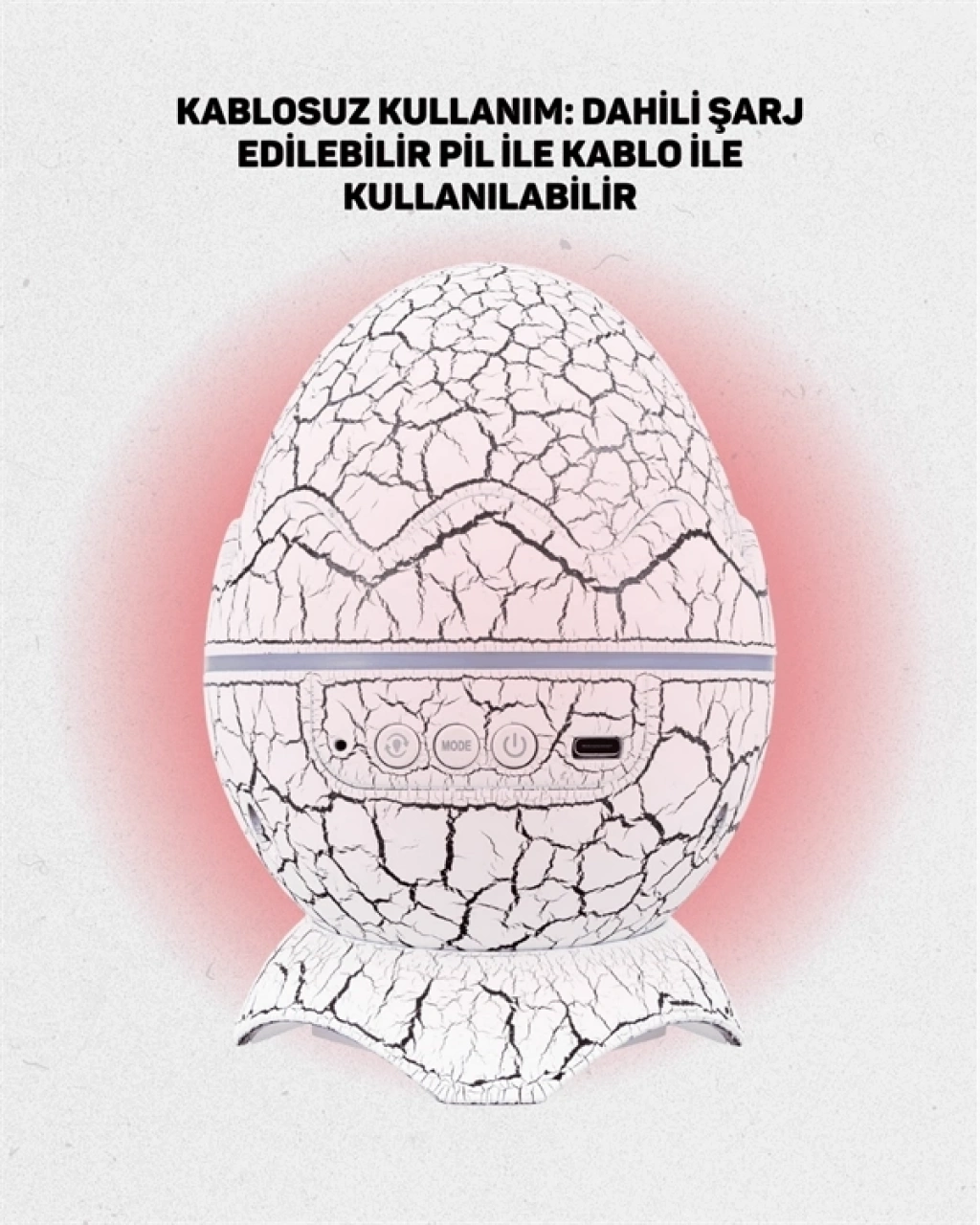 Bu ürün sadece bir ışık kaynağı değil, aynı zamanda dekoratif bir objedir. Dinozor yumurtası formu sayesinde çocukların ilgisini çekerken, ev dekorasyonuna modern ve eğlenceli bir dokunuş katar. Gece uykusuna geçişi kolaylaştırır, huzurlu bir atmosfer sunar. Partilerde, film gecelerinde ya da meditasyon zamanlarında kullanılarak çok yönlü bir kullanım sağlar.